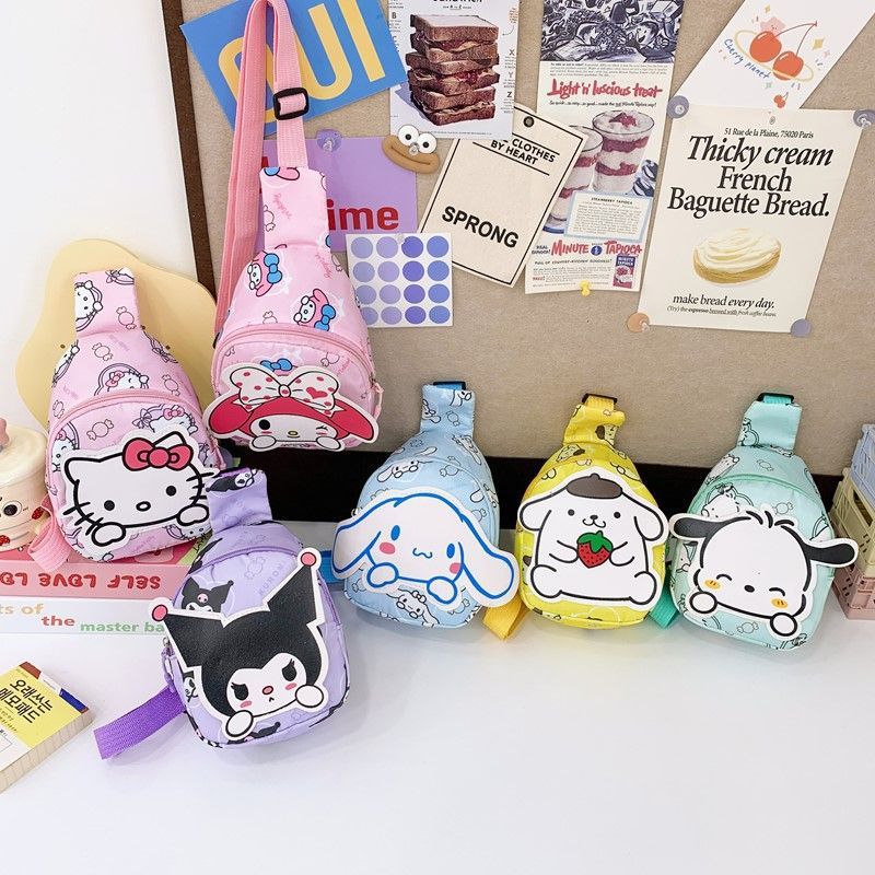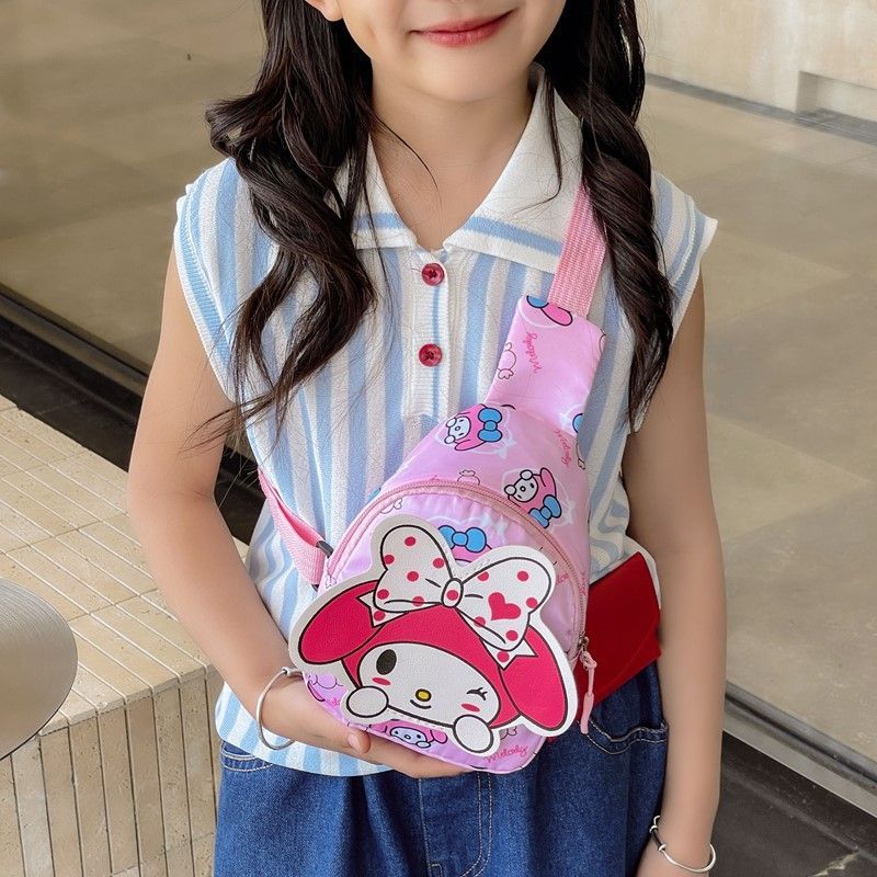 가슴 가방 2025 새로운 어린이 작은 어깨 가방 귀여운 만화 Kuromi 가방 어린이 동전 소녀 배낭스토어 가기