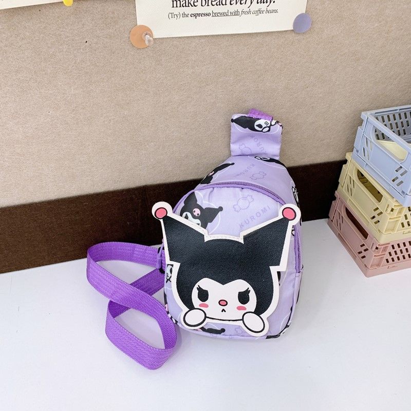 가슴 가방 2025 새로운 어린이 작은 어깨 가방 귀여운 만화 Kuromi 가방 어린이 동전 소녀 배낭