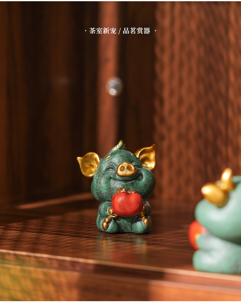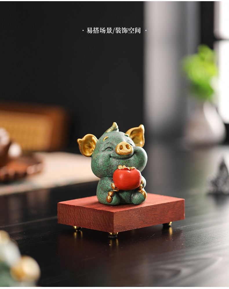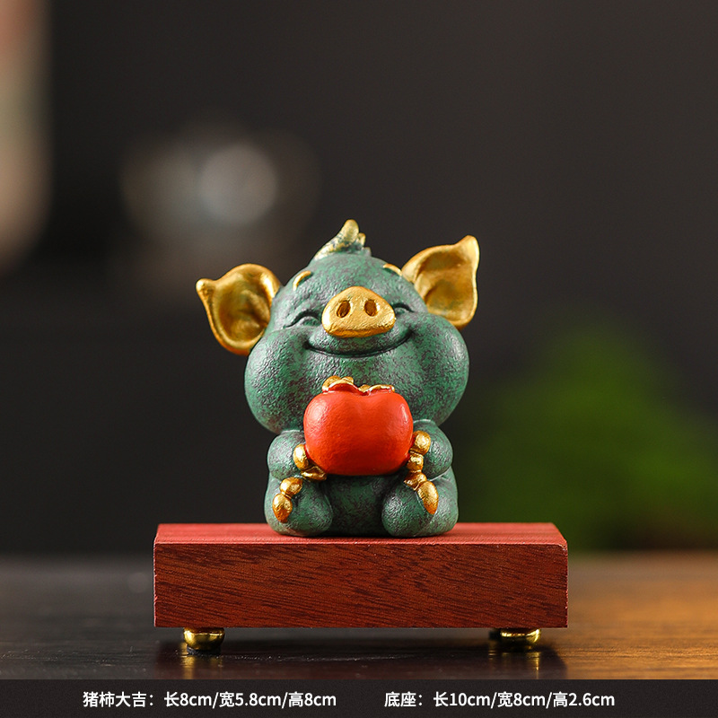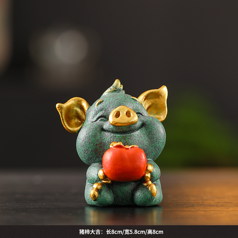 녹색 모래 돌 돼지 감 다지 중국 스타일의 창조적 인 작은 장식품 가파운드 분재 장식품 거실 차 탁상 돌 장식품