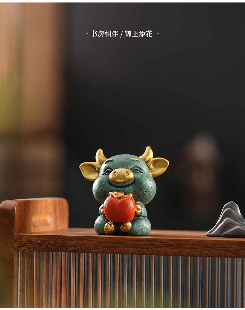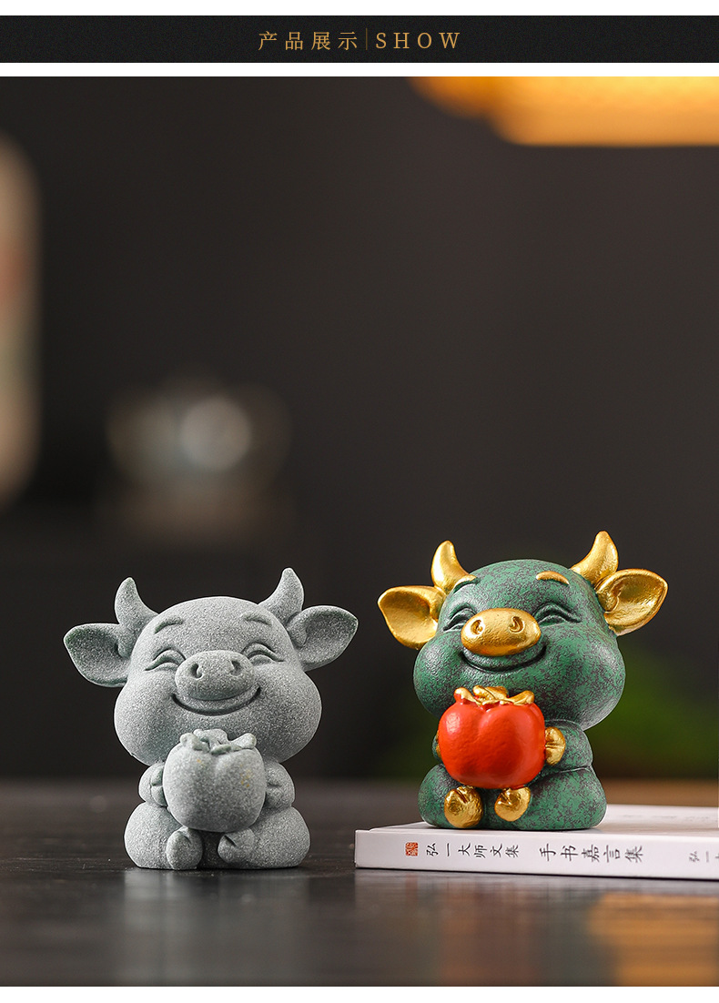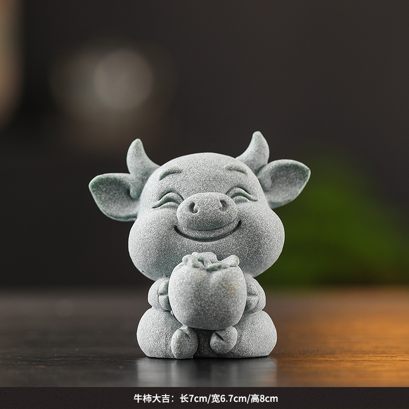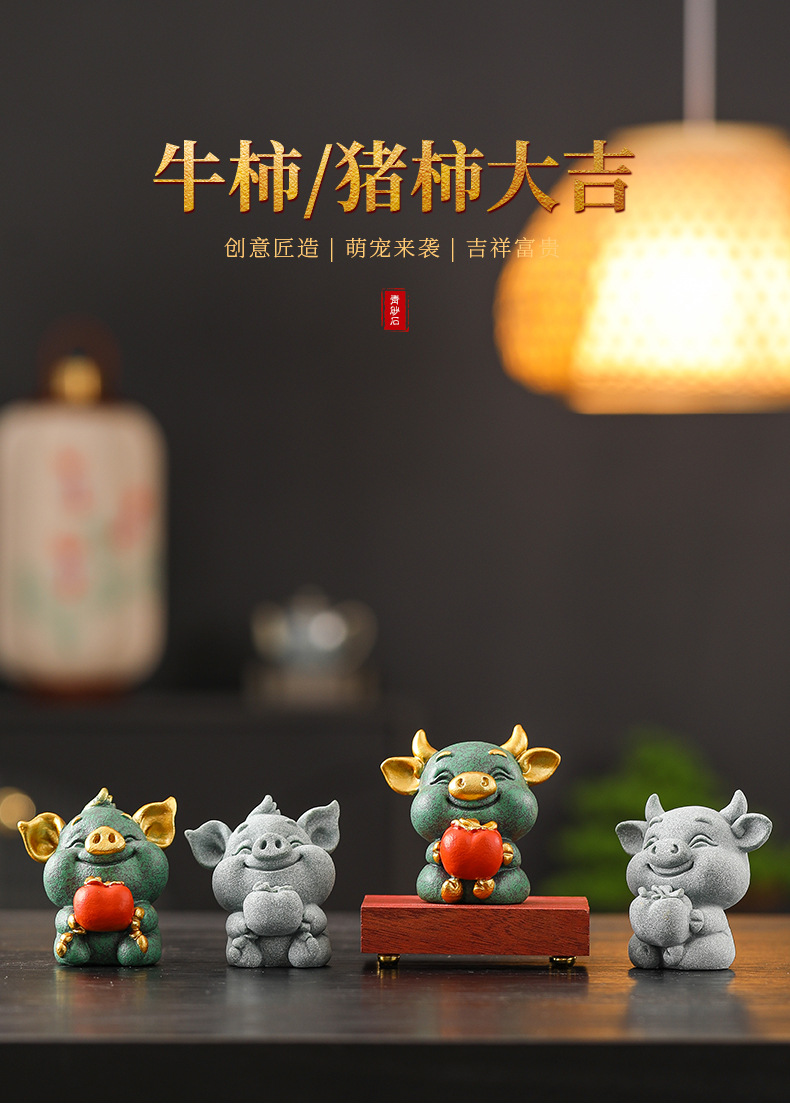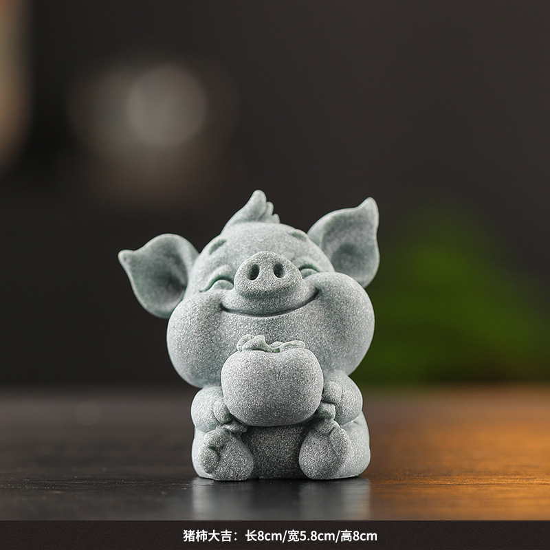 녹색 모래 돌 돼지 감 다지 중국 스타일의 창조적 인 작은 장식품 가파운드 분재 장식품 거실 차 탁상 돌 장식품스토어 가기