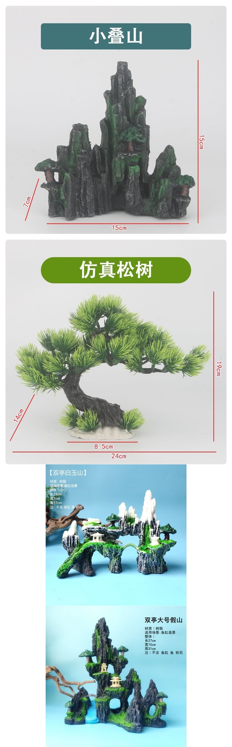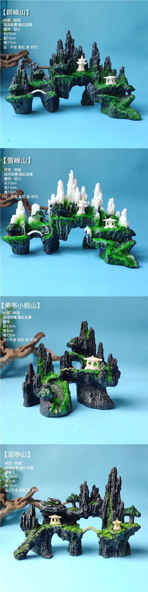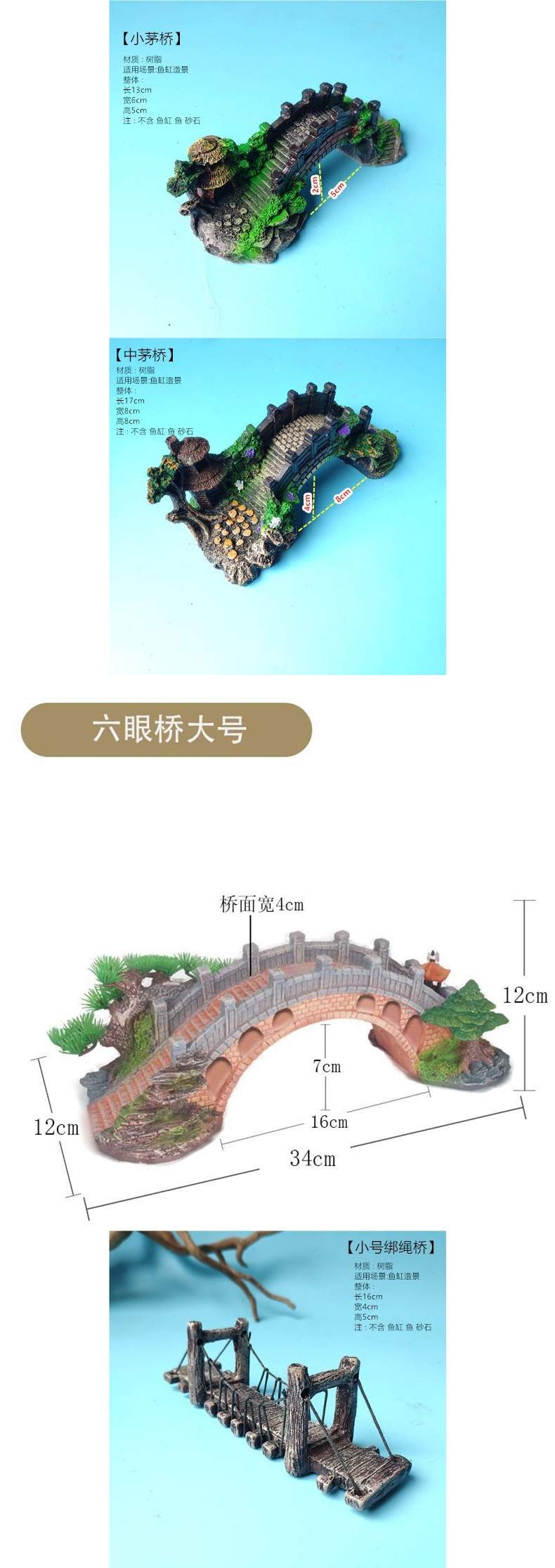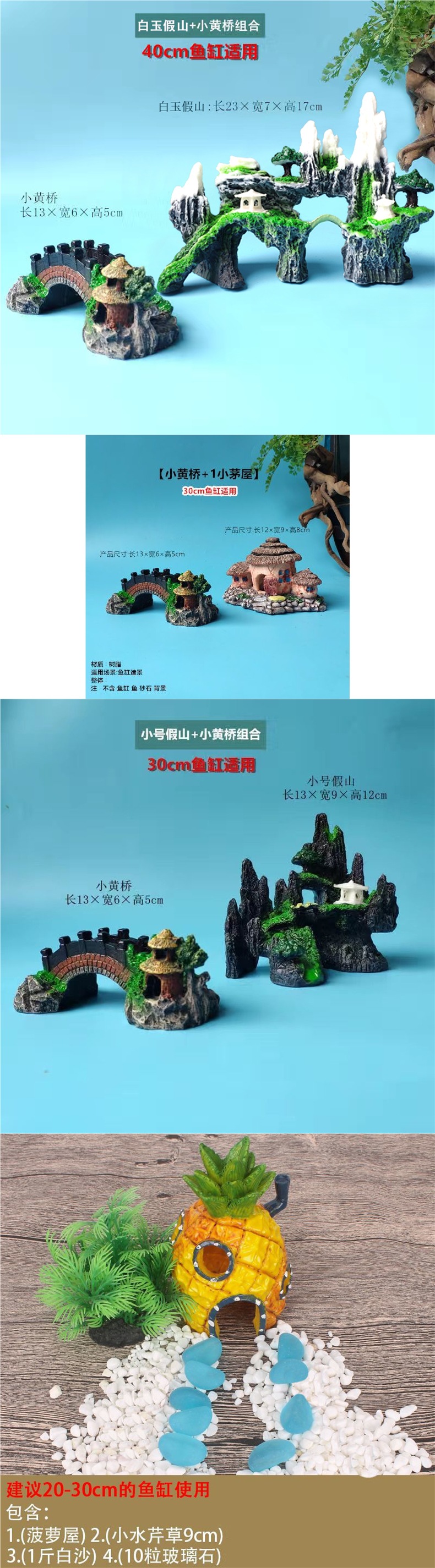 수조 조경, 가짜 돌, 작은 다리, 수족관 장식, 물고기 피난처, 시뮬레이션 수지 장식품 패키지