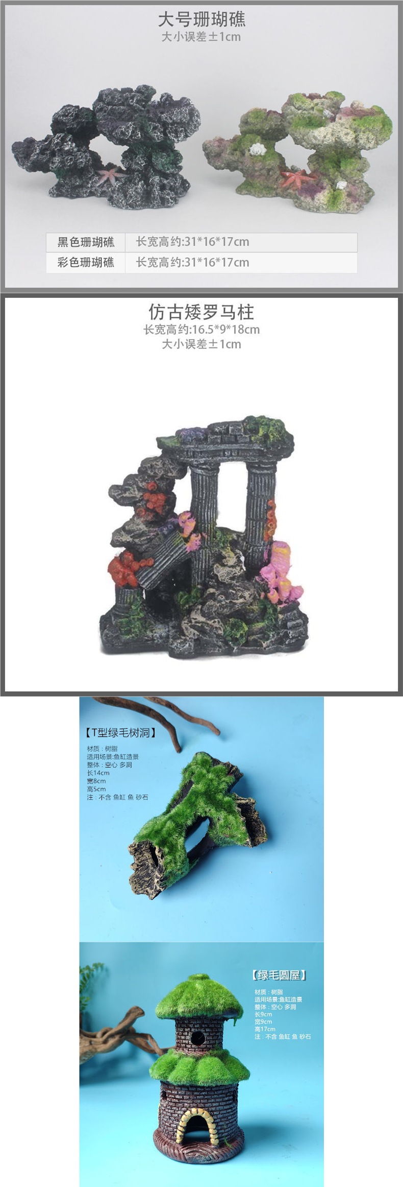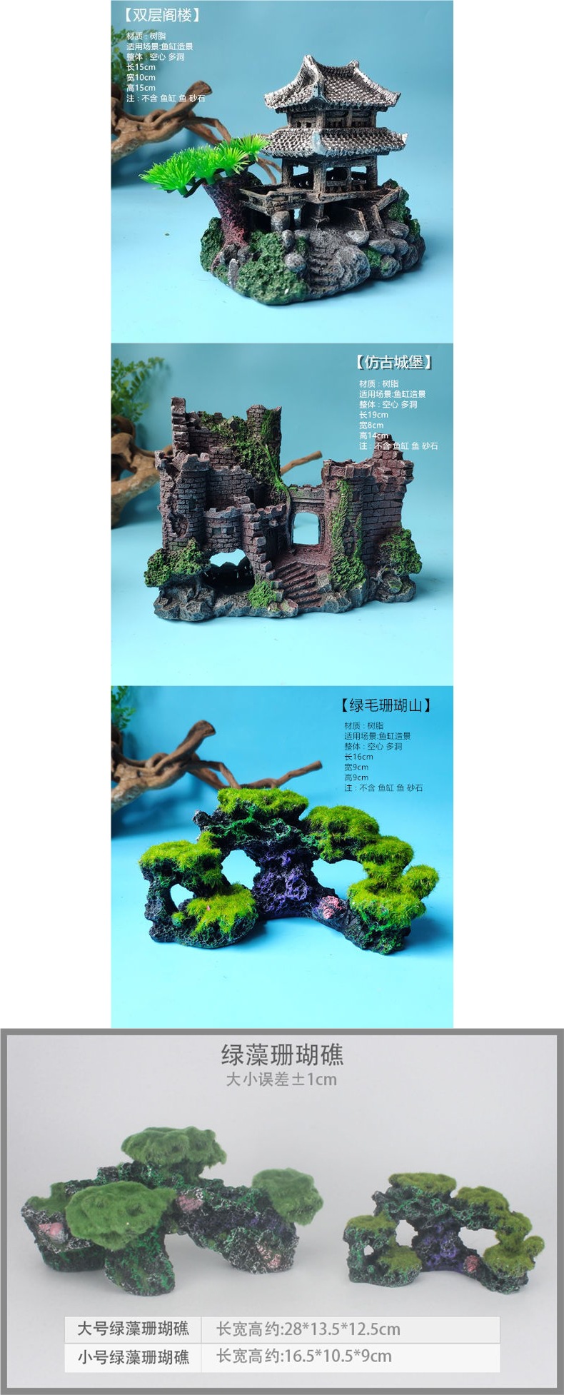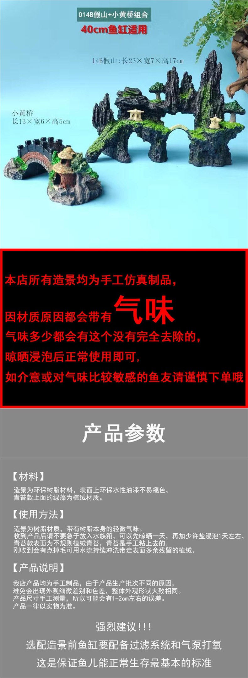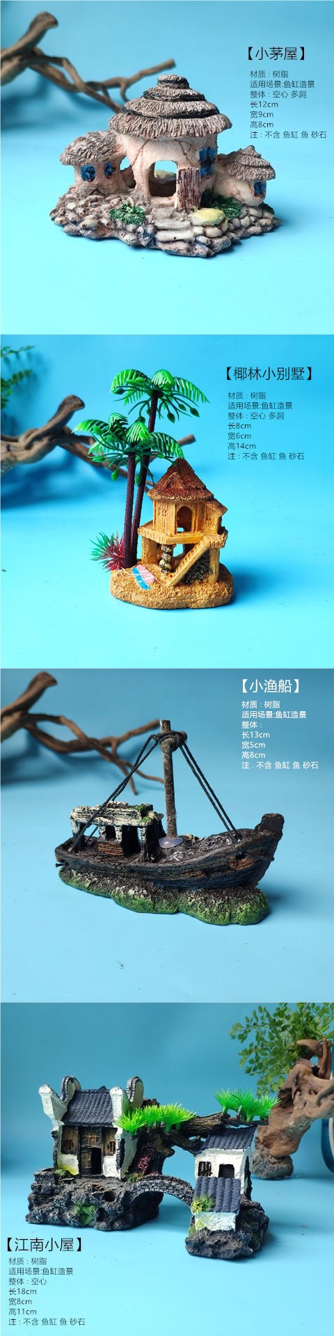 수조 조경, 가짜 돌, 작은 다리, 수족관 장식, 물고기 피난처, 시뮬레이션 수지 장식품 패키지