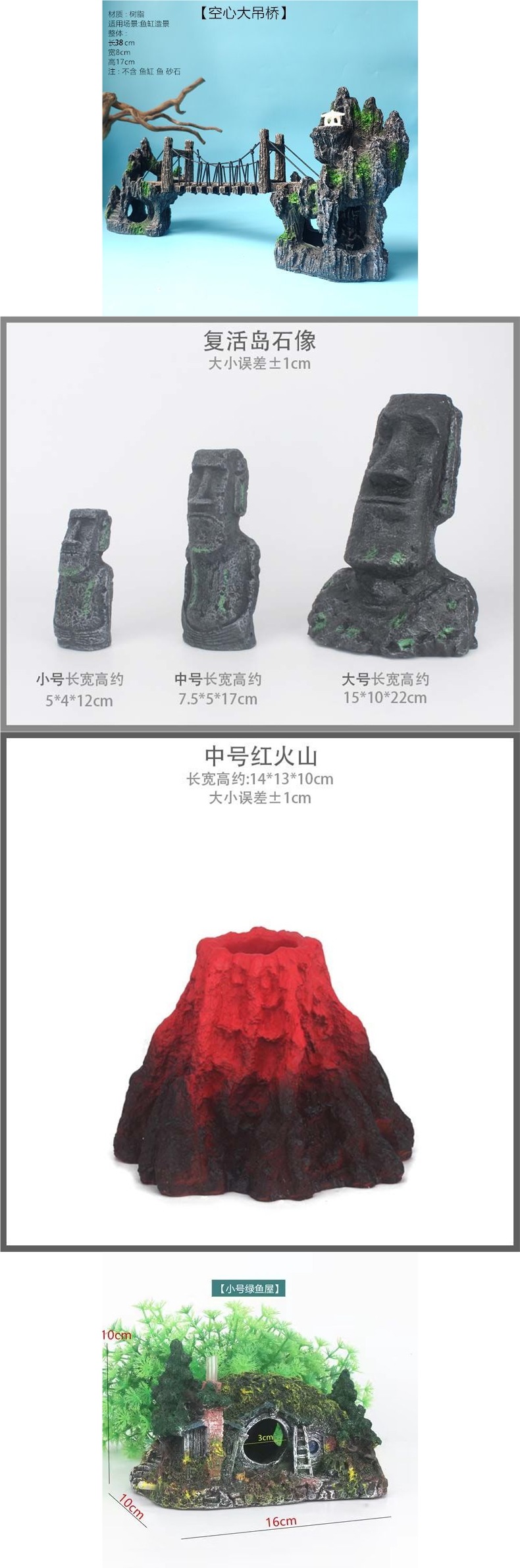 수조 조경, 가짜 돌, 작은 다리, 수족관 장식, 물고기 피난처, 시뮬레이션 수지 장식품 패키지스토어 가기