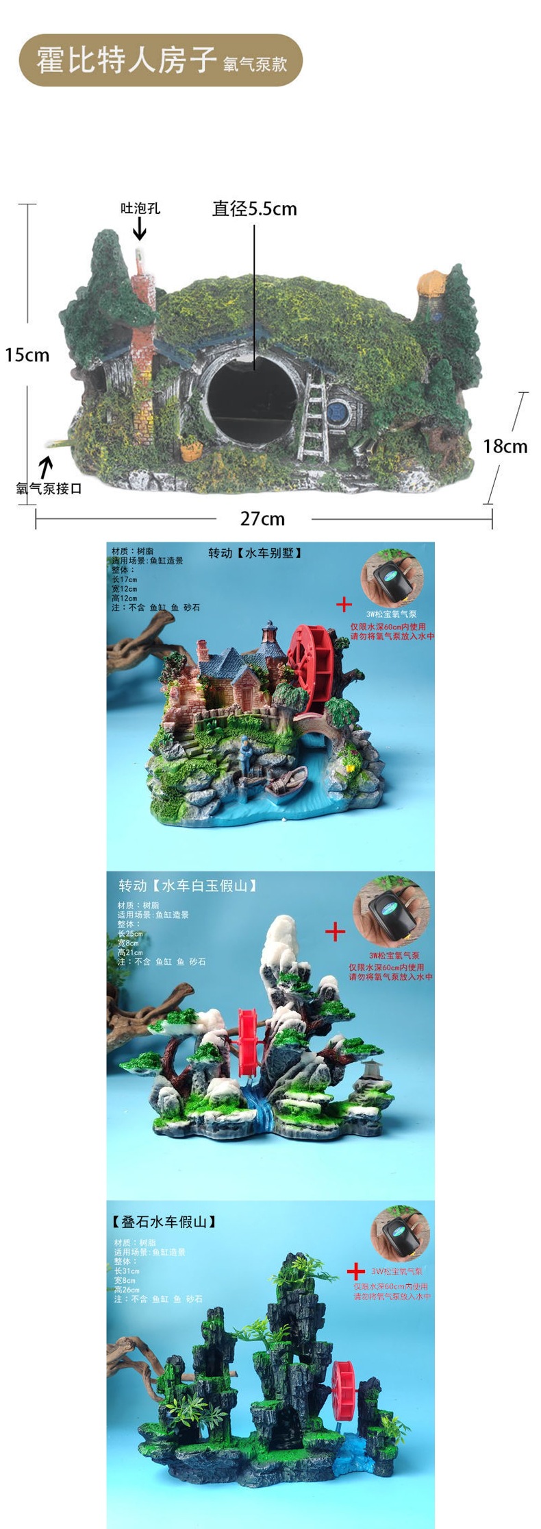• [산소분사 큰 물고기 집 + 산소 펌프] + 풀 2개