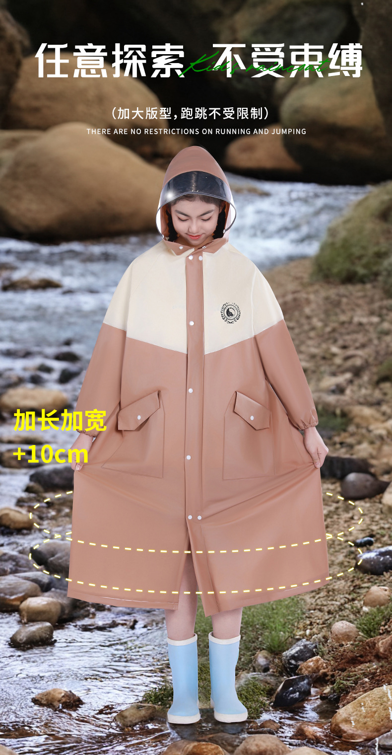 중대형 어린이용 EVA 와이드 일체형 우비, 폭우 방지, 이중 포켓, 패셔너블한 배색, 학교, 외출용 레인코트