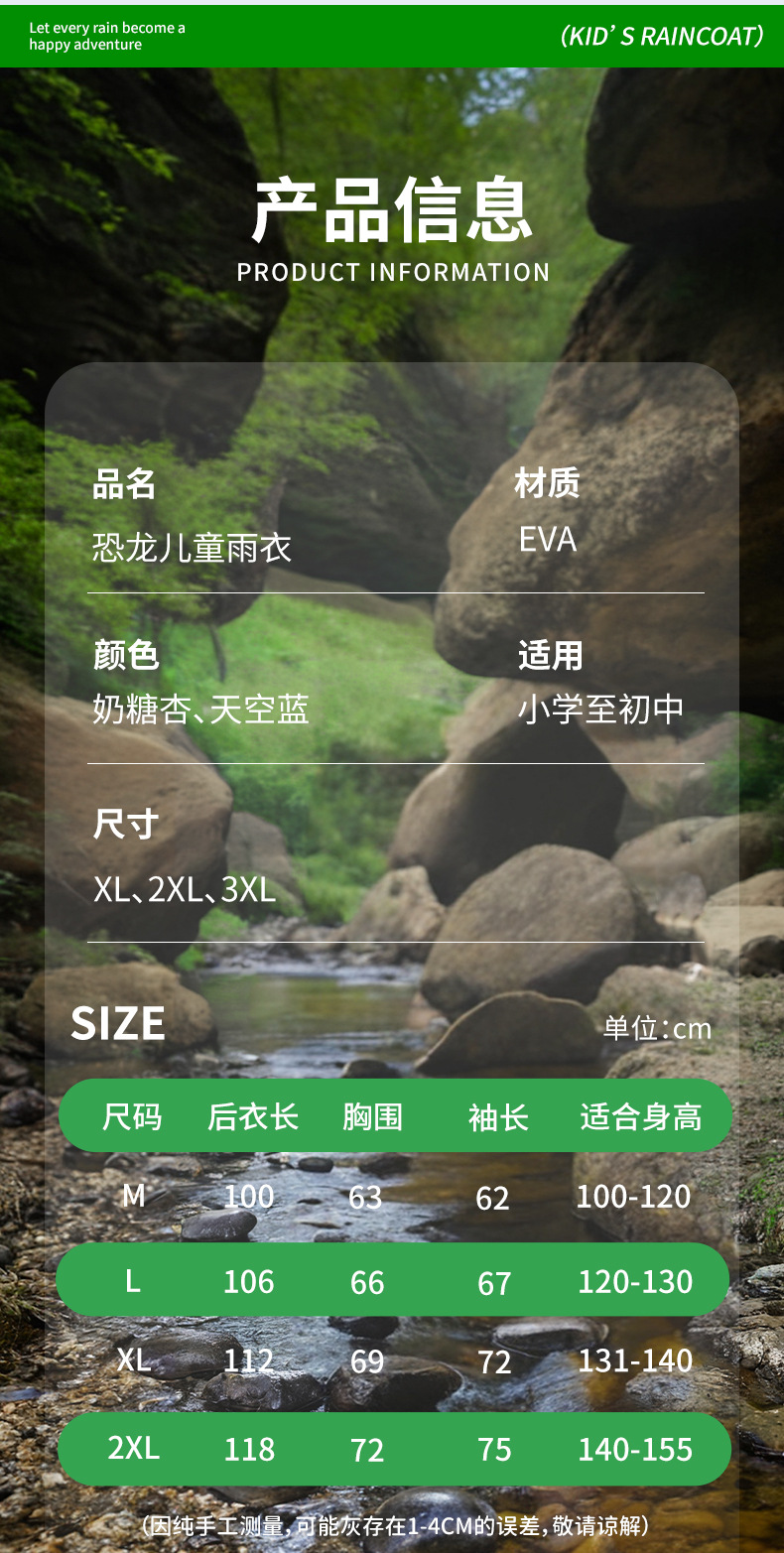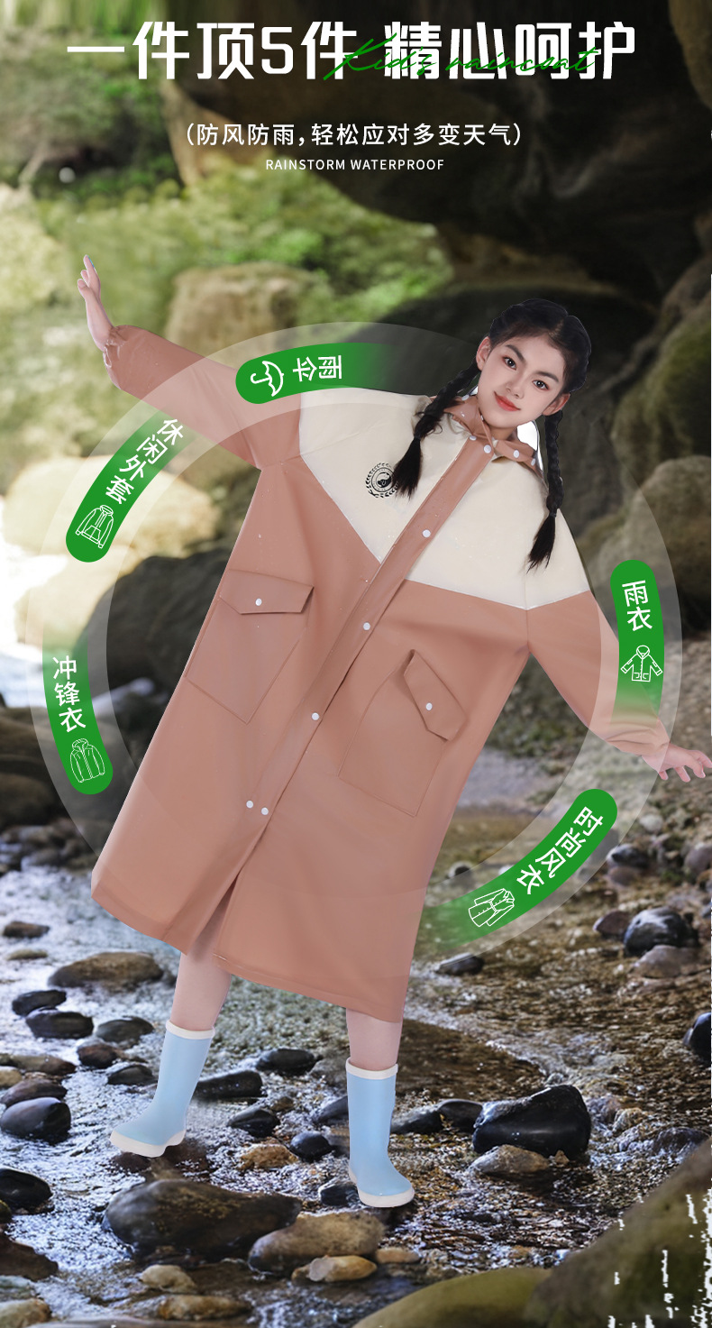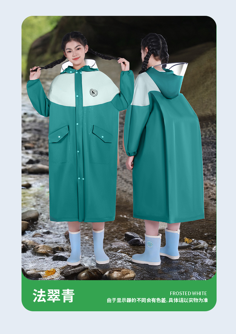 중대형 어린이용 EVA 와이드 일체형 우비, 폭우 방지, 이중 포켓, 패셔너블한 배색, 학교, 외출용 레인코트스토어 가기