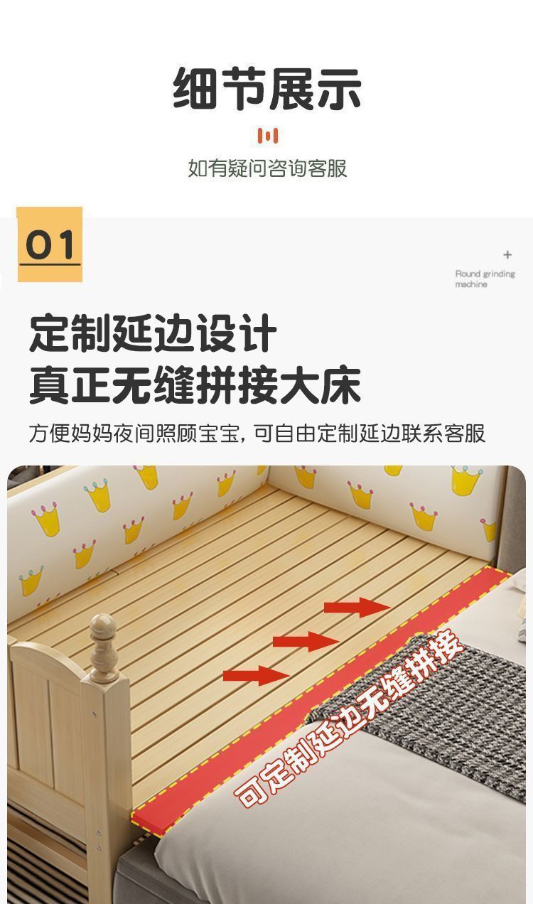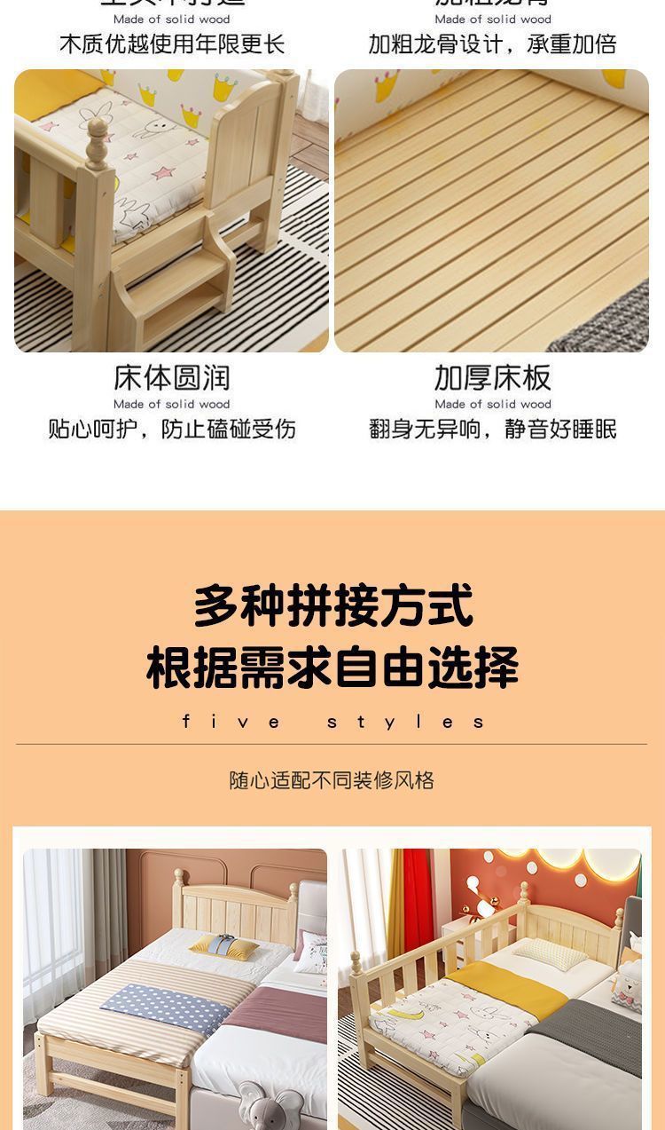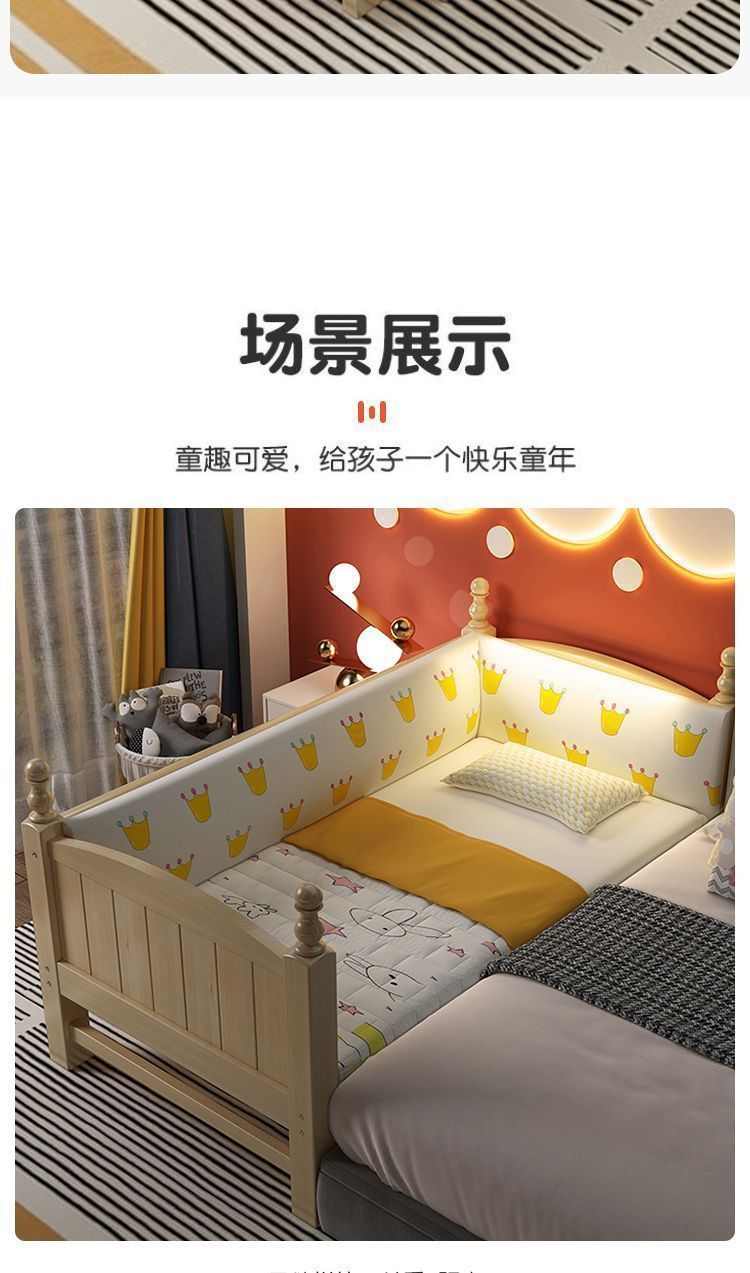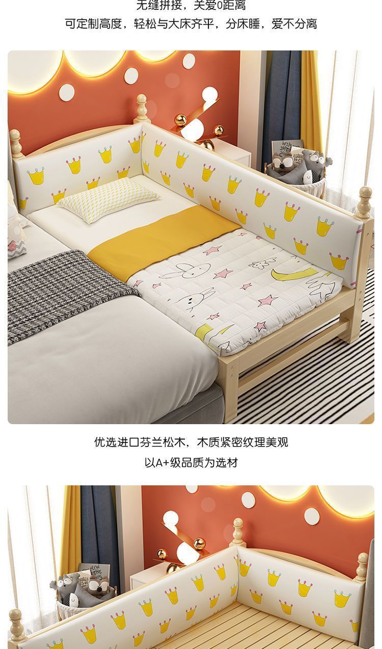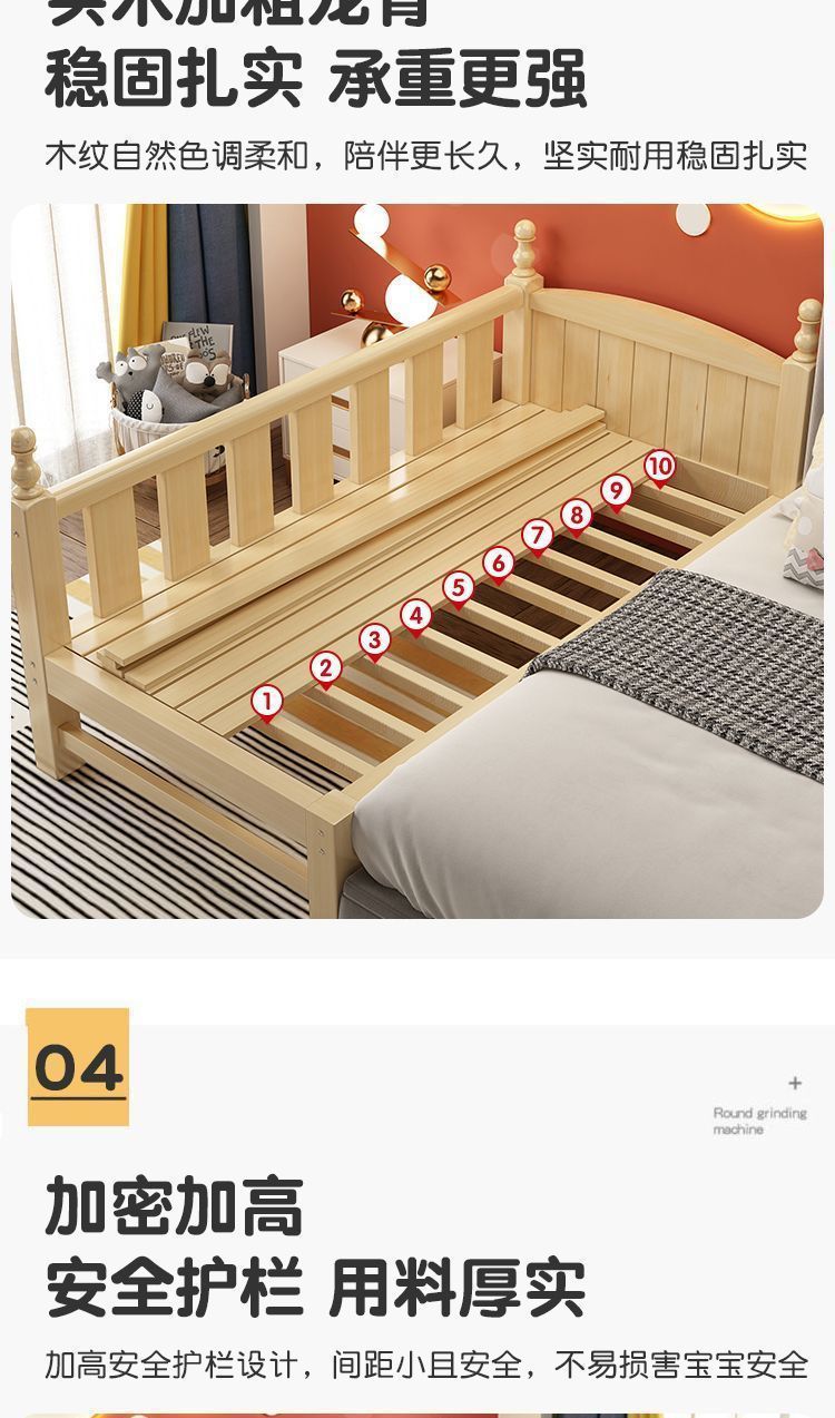 Mlo 단단한 나무 아기 접합 침대, 넓은 안전 가드 레일 포함, 소년 소녀용, 아기 싱글 침대 옆, 어린이용 대형 침대