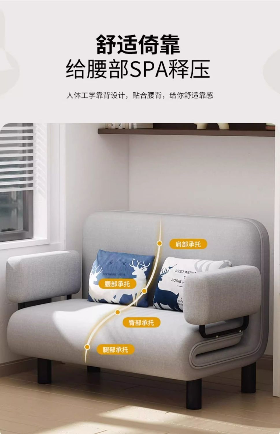 소파 베드 접이식 이중 목적 패브릭 소파 점심 시간 침대 싱글 더블 다기능 침대 발코니 작은 아파트 인터넷 연예인 모델