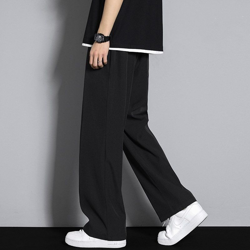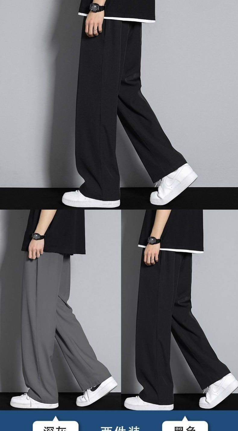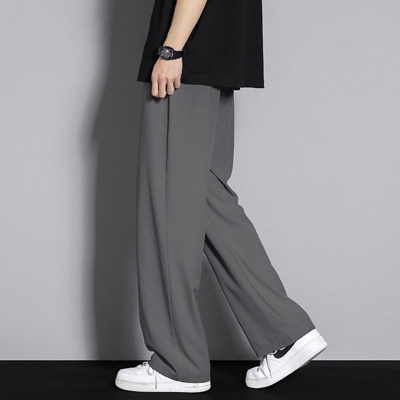 아이스 실크 캐주얼 바지 남성 여름 한국 스타일 트렌디 다용도 와이드 레그 속건 캐주얼 얇은 스포츠 루즈 드레이프 바지