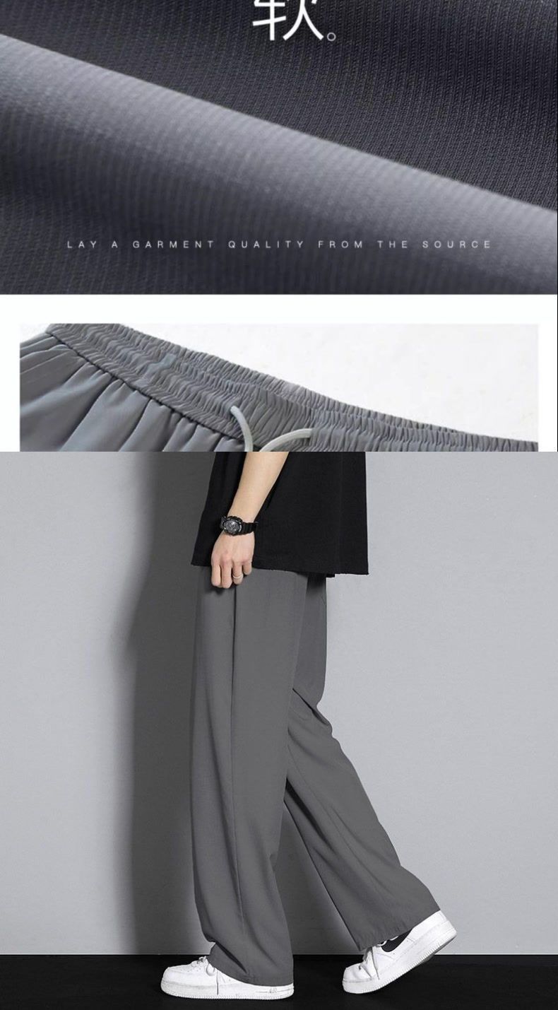 아이스 실크 캐주얼 바지 남성 여름 한국 스타일 트렌디 다용도 와이드 레그 속건 캐주얼 얇은 스포츠 루즈 드레이프 바지스토어 가기