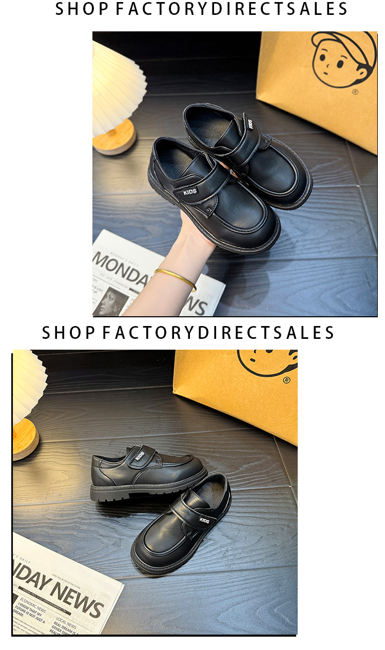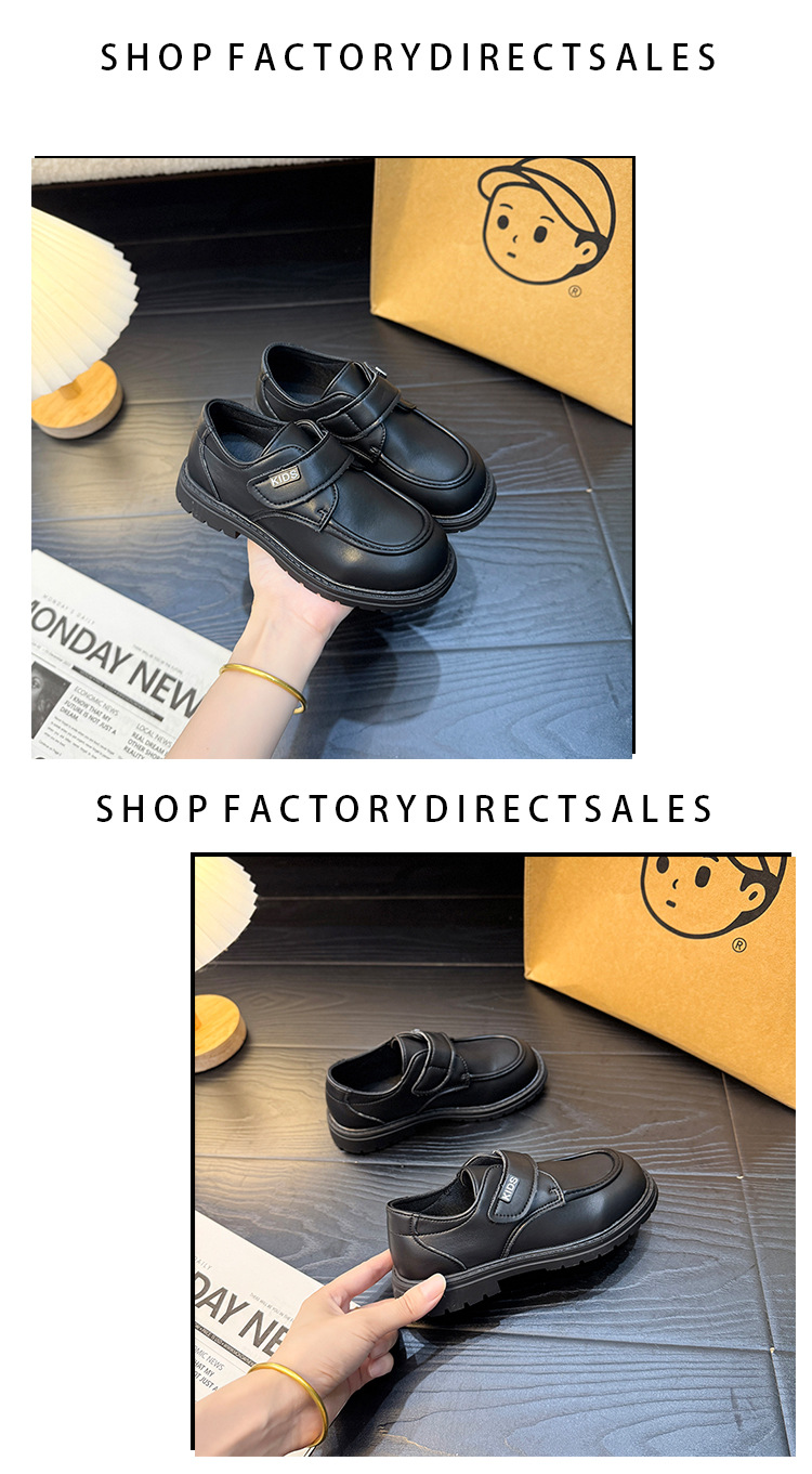 2025 봄과 가을 소년 가죽 신발 블랙 패션 부드러운 바닥 어린이 성능 신발 벨크로 소녀 캐주얼 신발스토어 가기