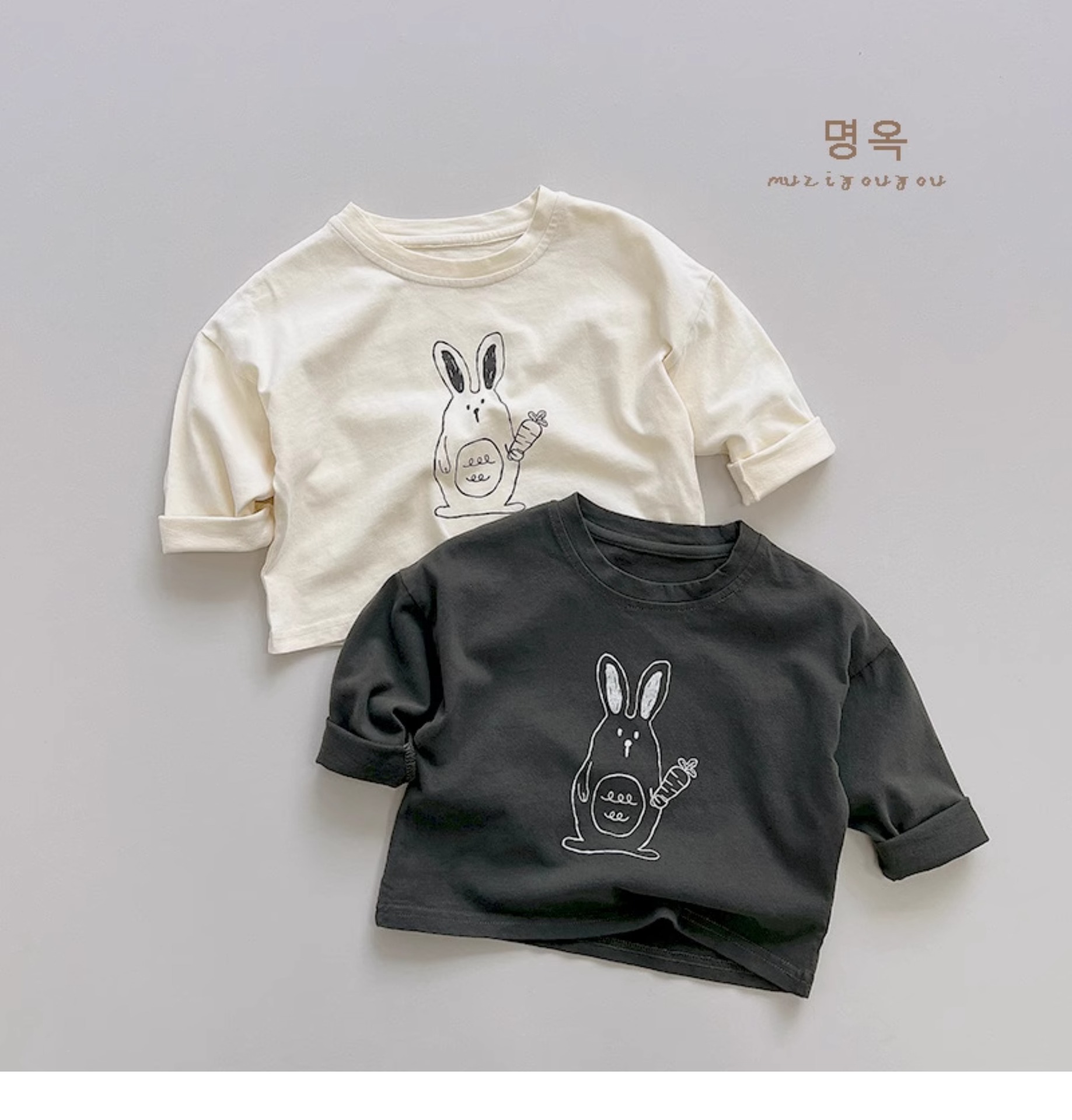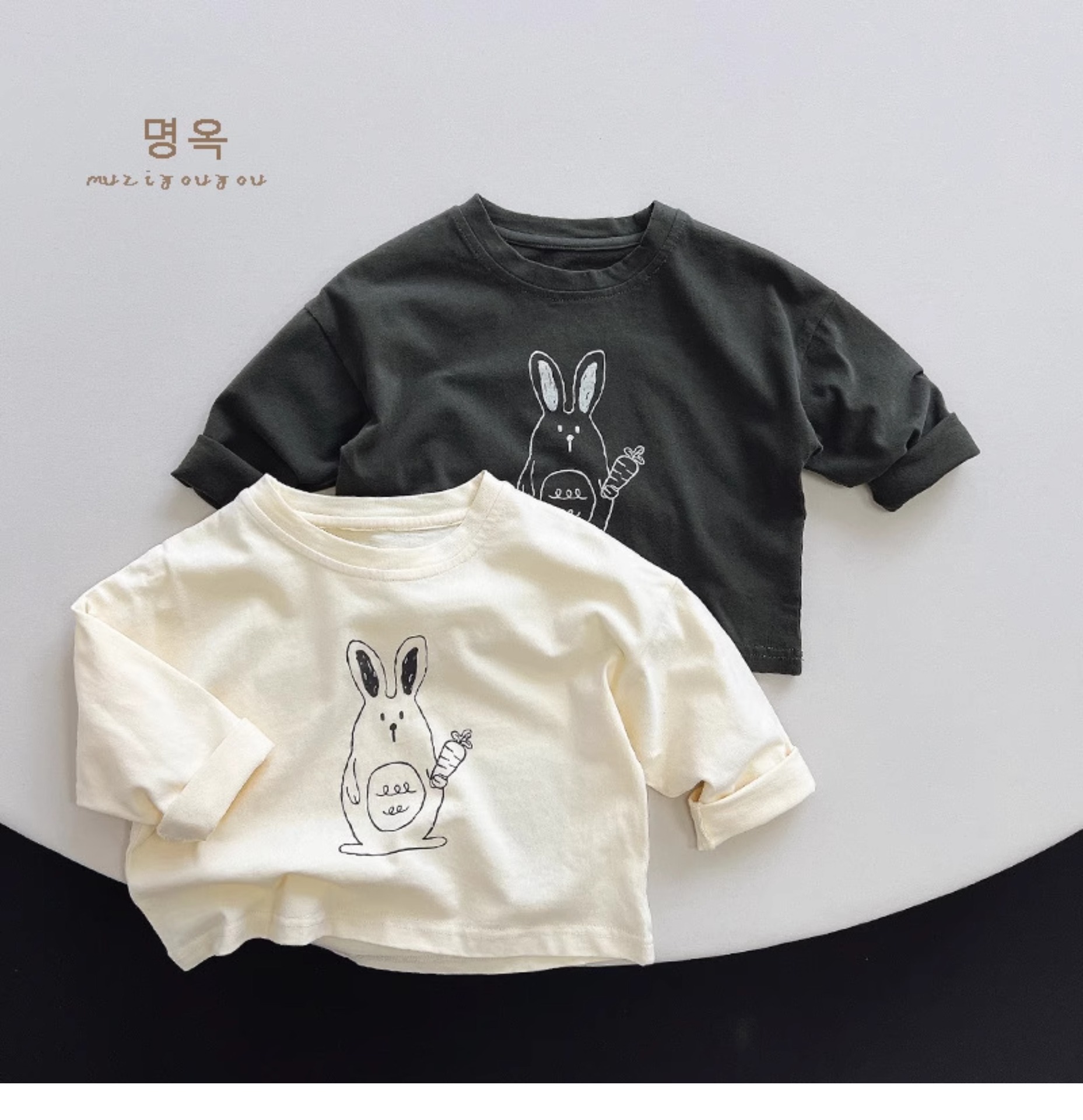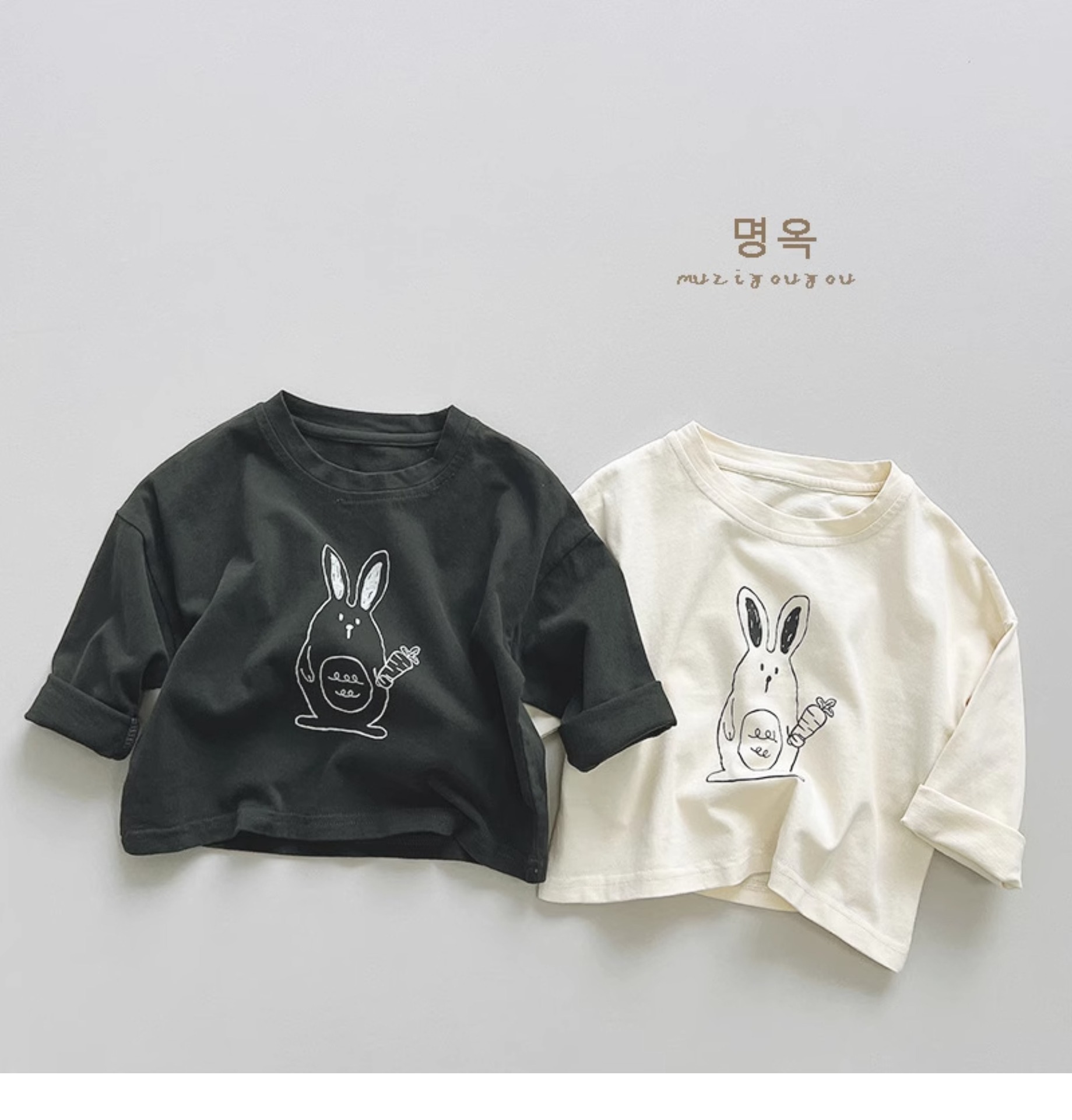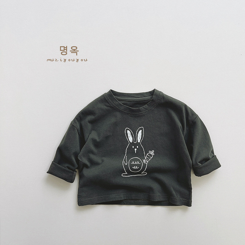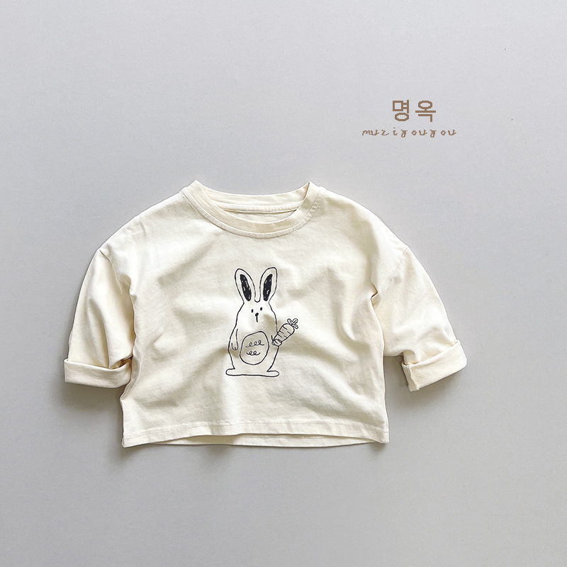활기차고 귀여운! 한국 소년 소녀 패션 만화 토끼 긴팔 티셔츠 아동용 다용도 면 상의 2025 가을스토어 가기