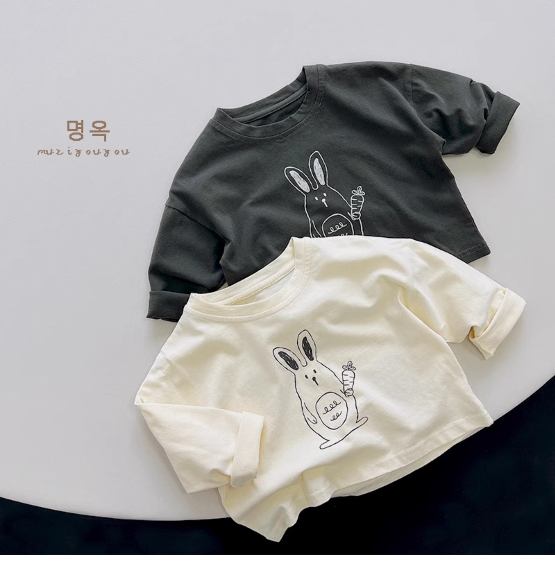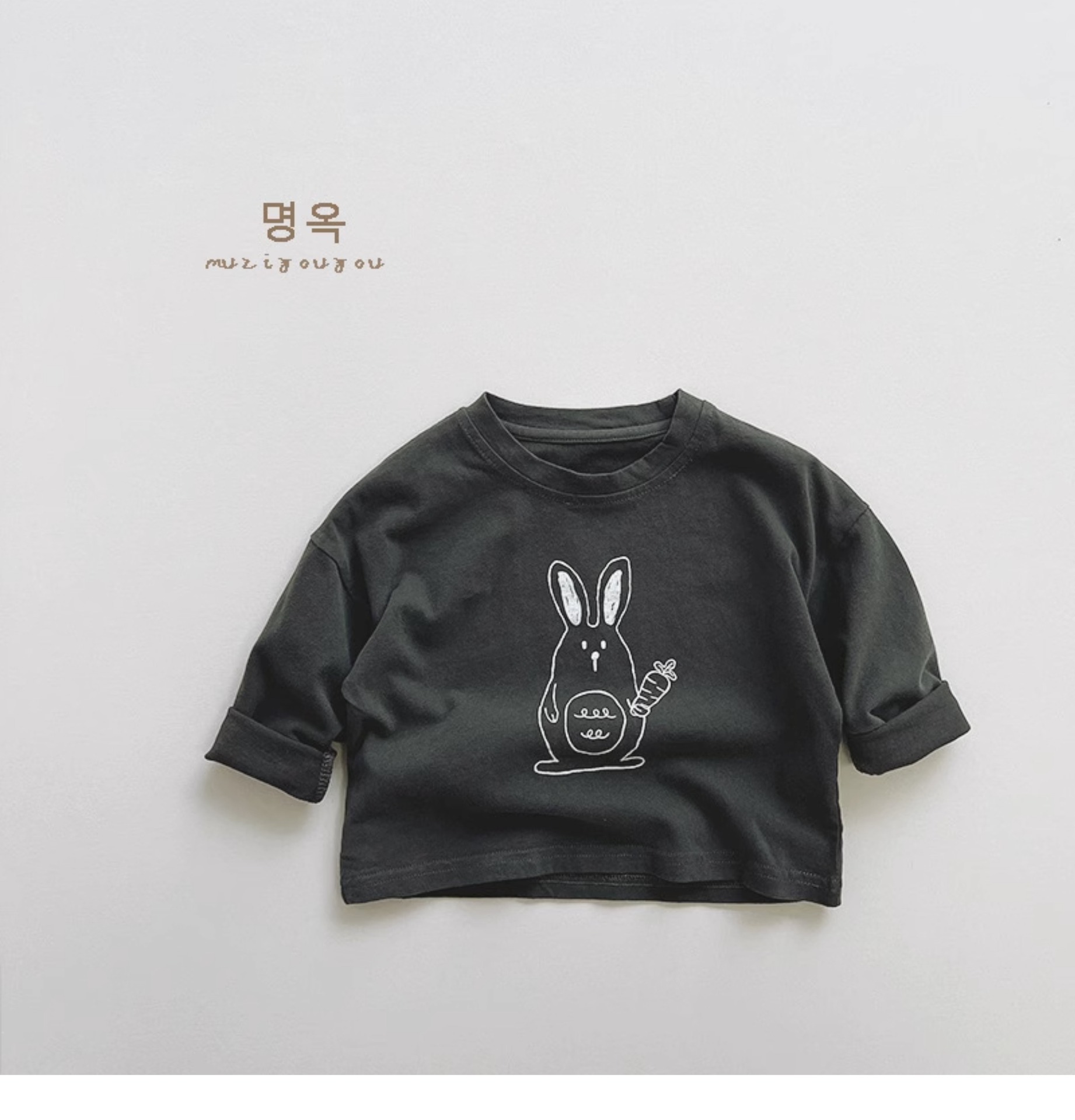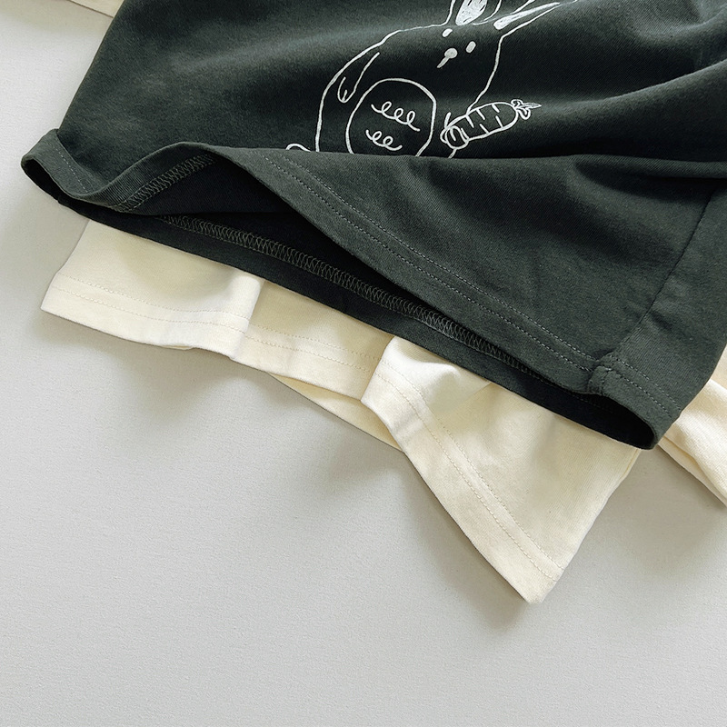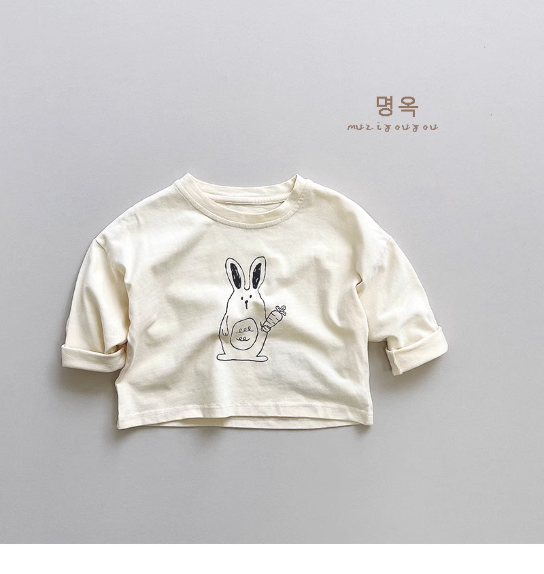 활기차고 귀여운! 한국 소년 소녀 패션 만화 토끼 긴팔 티셔츠 아동용 다용도 면 상의 2025 가을스토어 가기