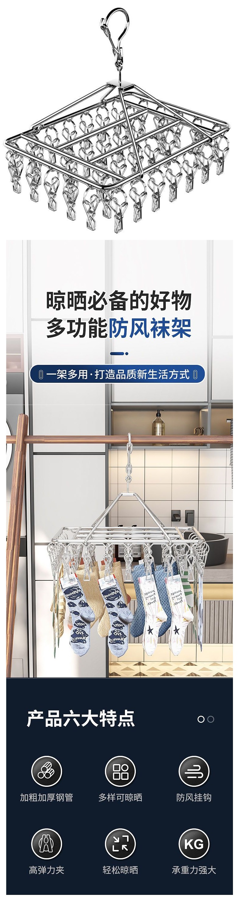 두꺼운 옷걸이 클립 스타일 양말 건조를 위한 스테인레스 스틸 옷걸이, 양말 걸이, 다기능 방풍 후크