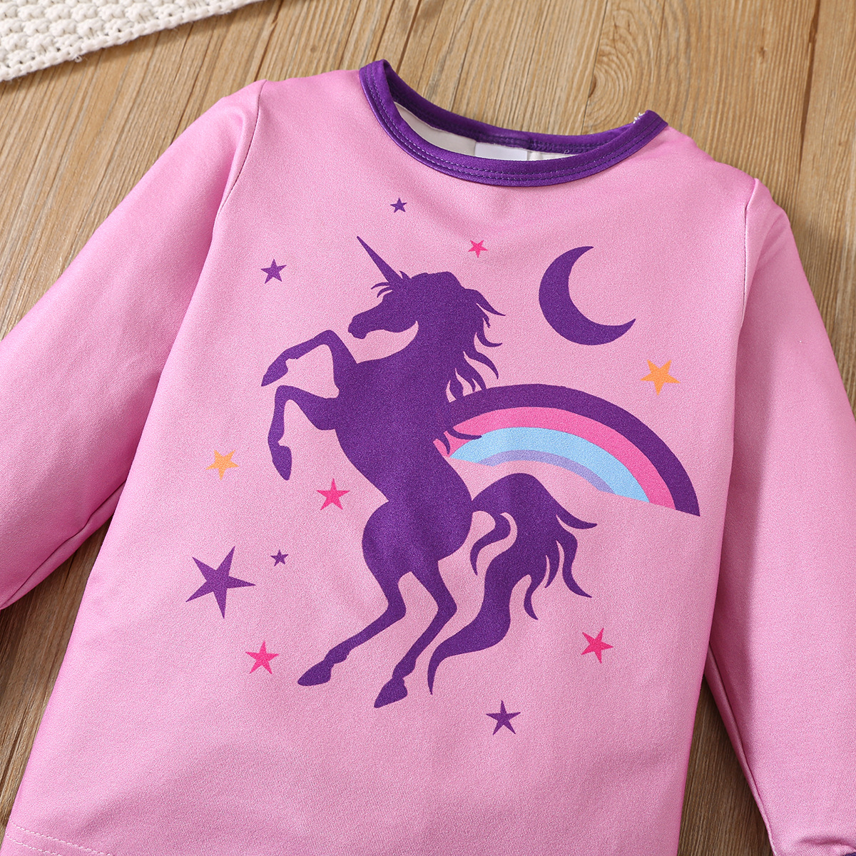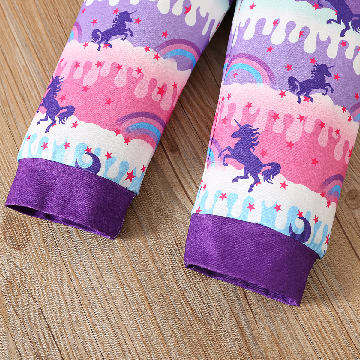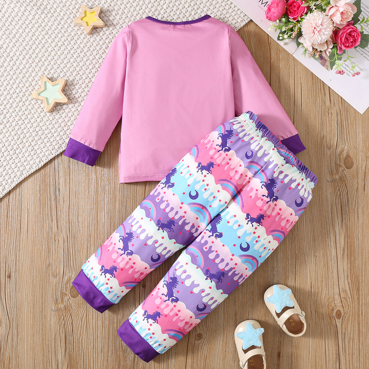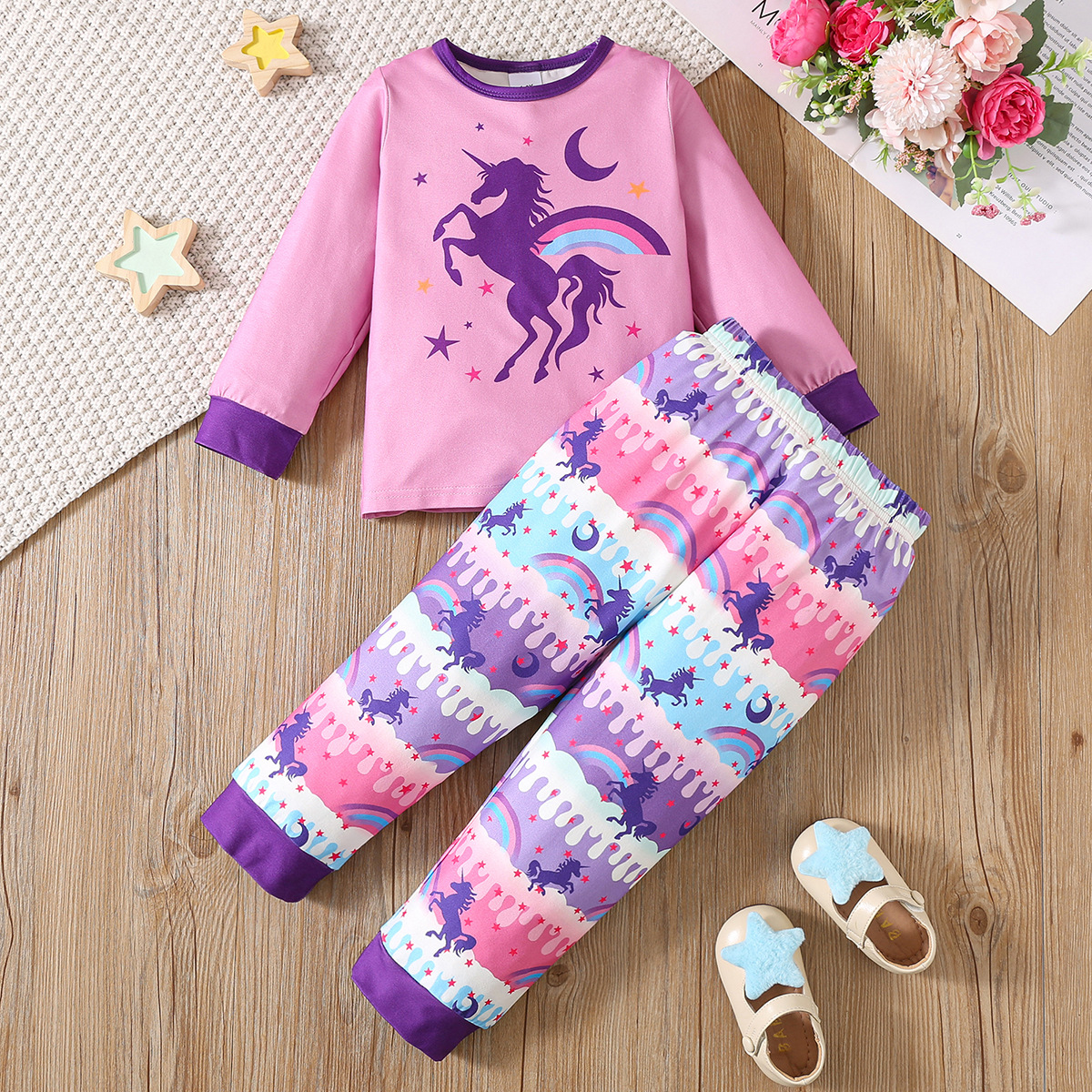여자 봄, 가을 잠옷 세트 만화 무지개 말 별과 달 인쇄 긴 소매 바지 홈웨어 세트스토어 가기