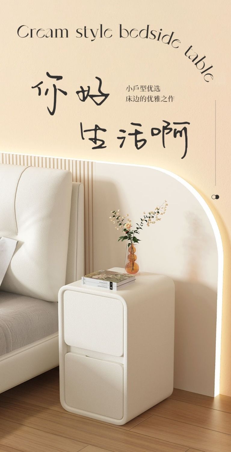 크림 스타일 침대 옆 탁자 단단한 나무 보관 캐비닛 작은 초소형 슬롯 20cm 마스터 침실 침대 옆 좁은 캐비닛 간단한 보관스토어 가기
