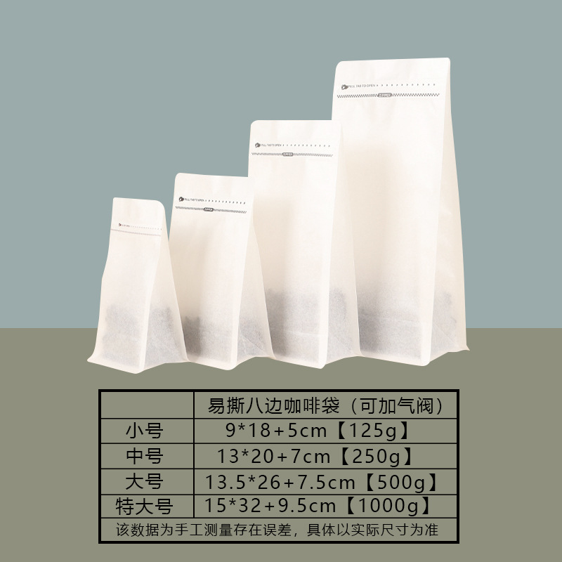 8면 밀봉 포장 백 알루미늄 호일 크래프트 종이 식품 포장 백 0 버전 무료 버전 인쇄 가능한 커피 콩 포장 백