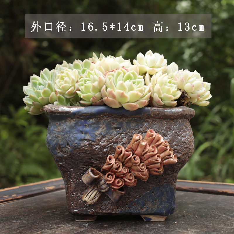 새로운 복고풍 손으로 그린 꽃 마이크로드 섬유 다육 화분 거친 도자기 통기성 맞춤형 대형 녹색 식물 Zhao Zhiwu스토어 가기