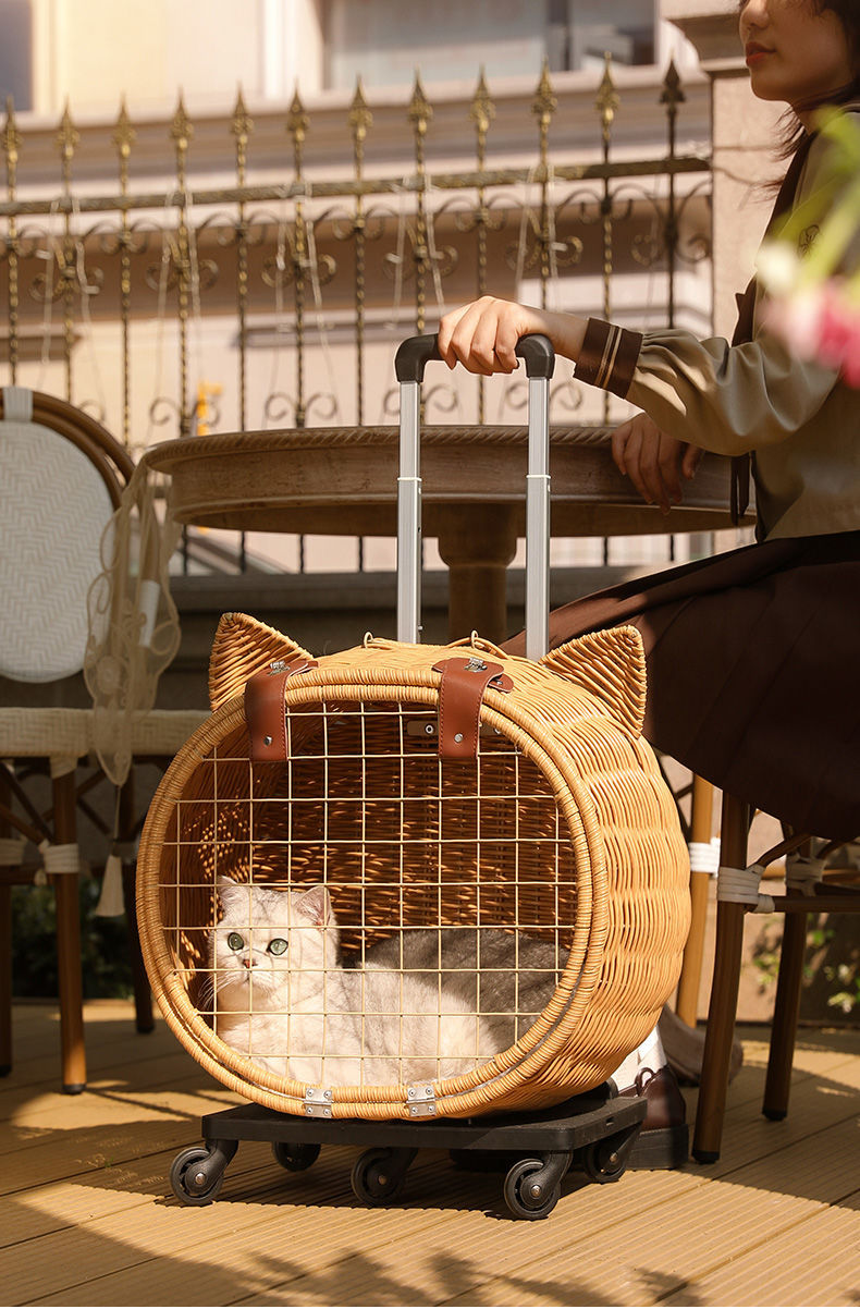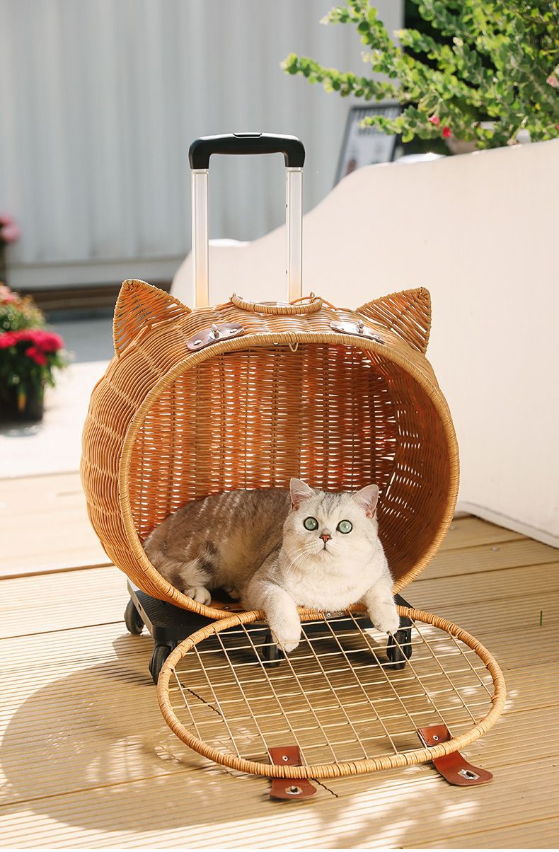 등나무 고양이 트롤리 케이스, 고양이 가방, 고양이 우주 캡슐, 애완동물 외출 휴대용 가방, 고양이 유모차, 대용량스토어 가기