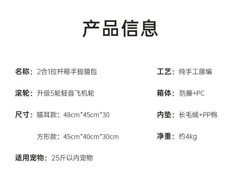 등나무 고양이 트롤리 케이스, 고양이 가방, 고양이 우주 캡슐, 애완동물 외출 휴대용 가방, 고양이 유모차, 대용량
