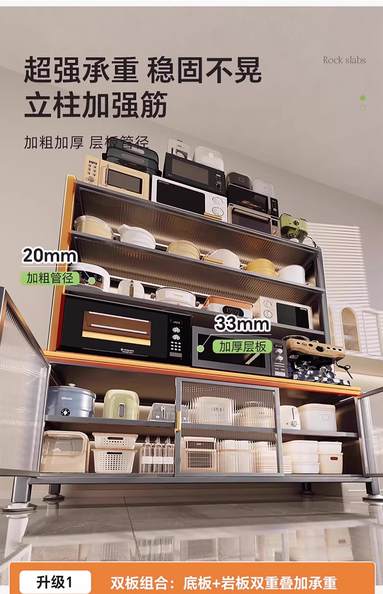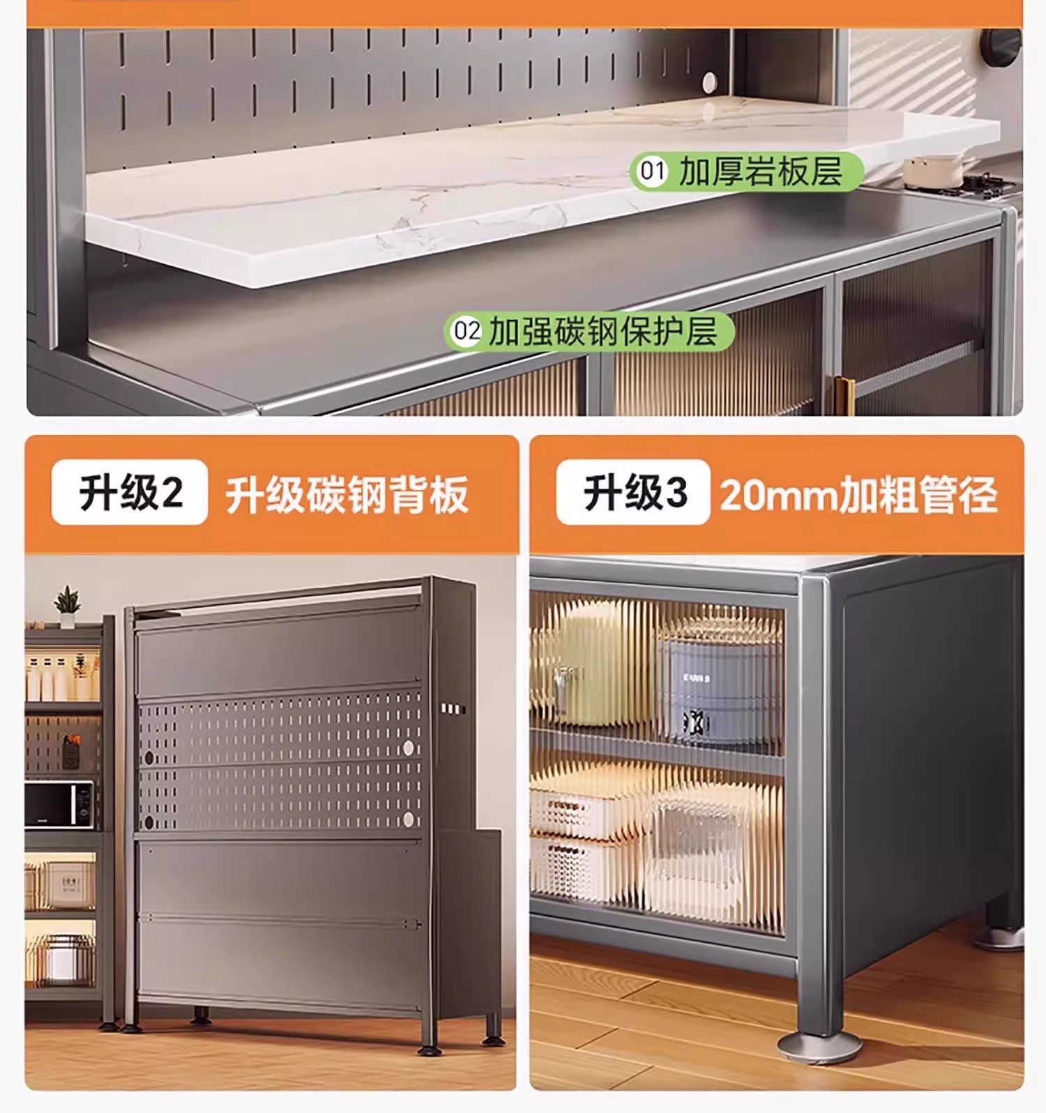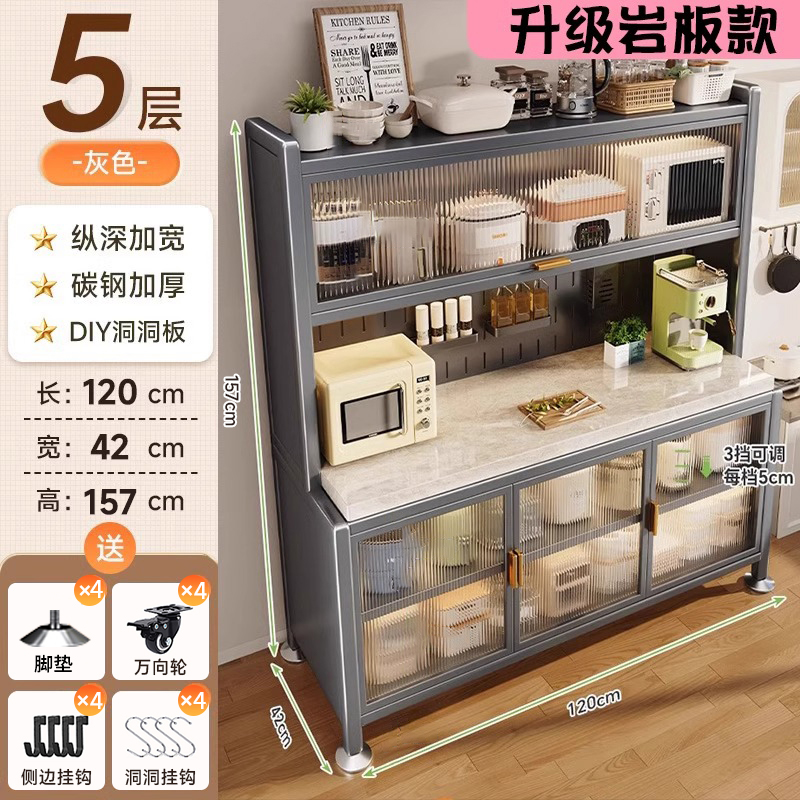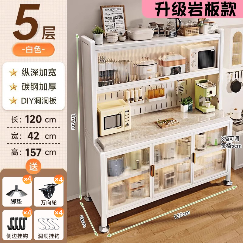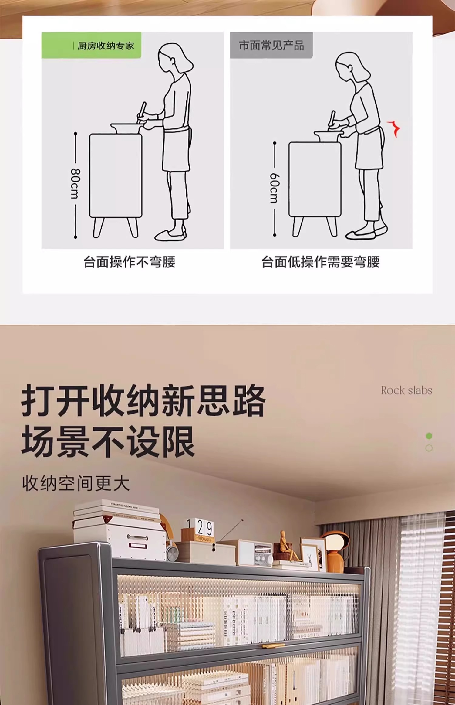 厨房多功能置物架岩板餐边柜家用防尘储物柜多层零食柜落地收纳柜
