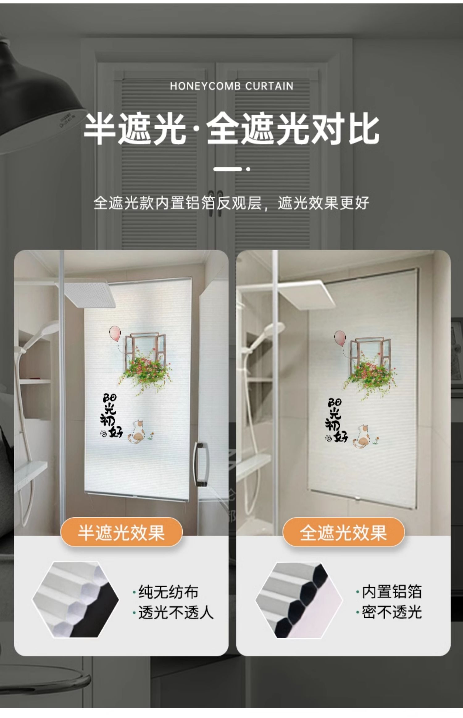 내부 여닫이 창 커튼, 허니컴 커튼, 베이스, 펀치 없는 내장형 보이지 않는 슬라이딩 허니컴 커튼, 내부 여닫이 창, 주방 및 욕실스토어 가기