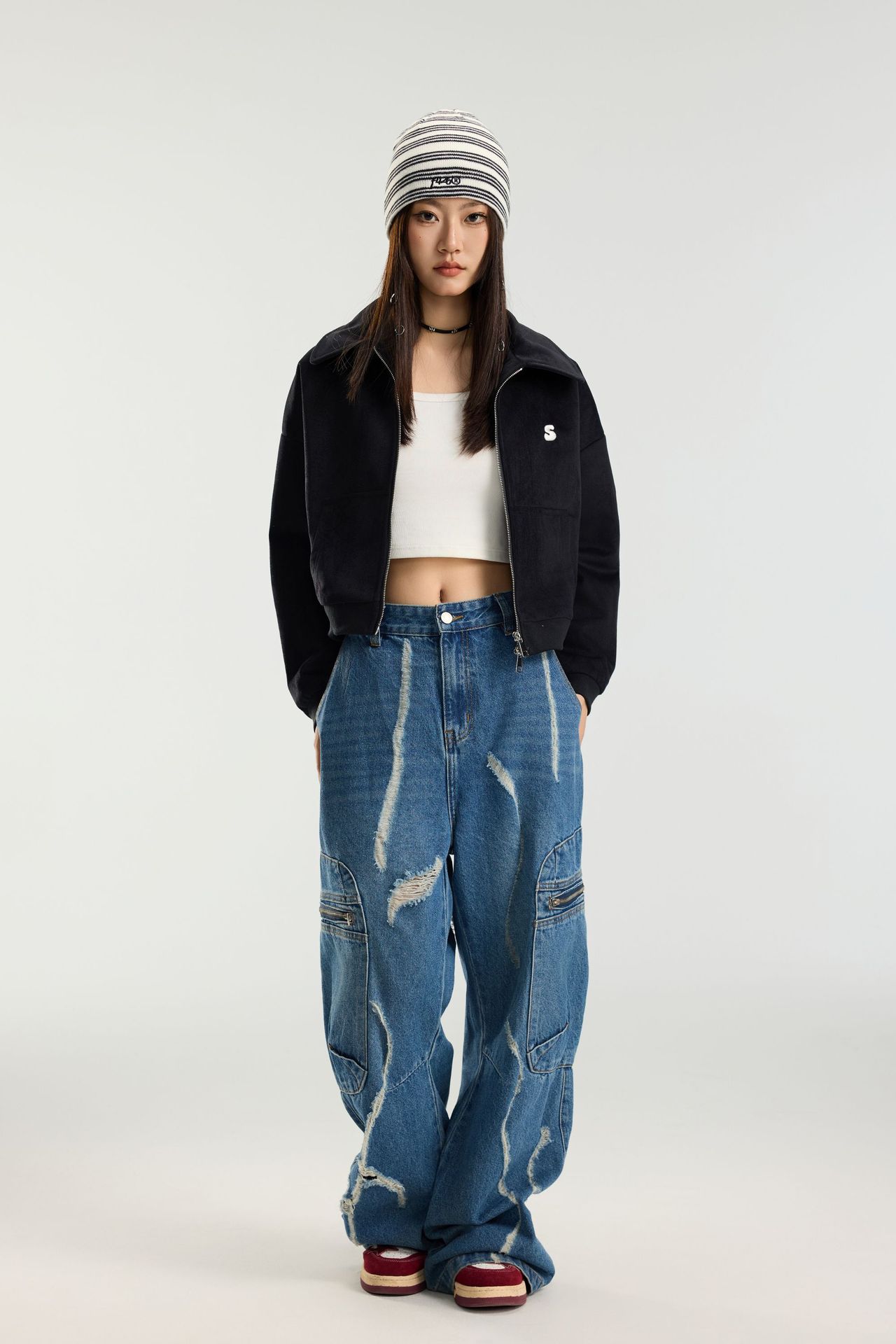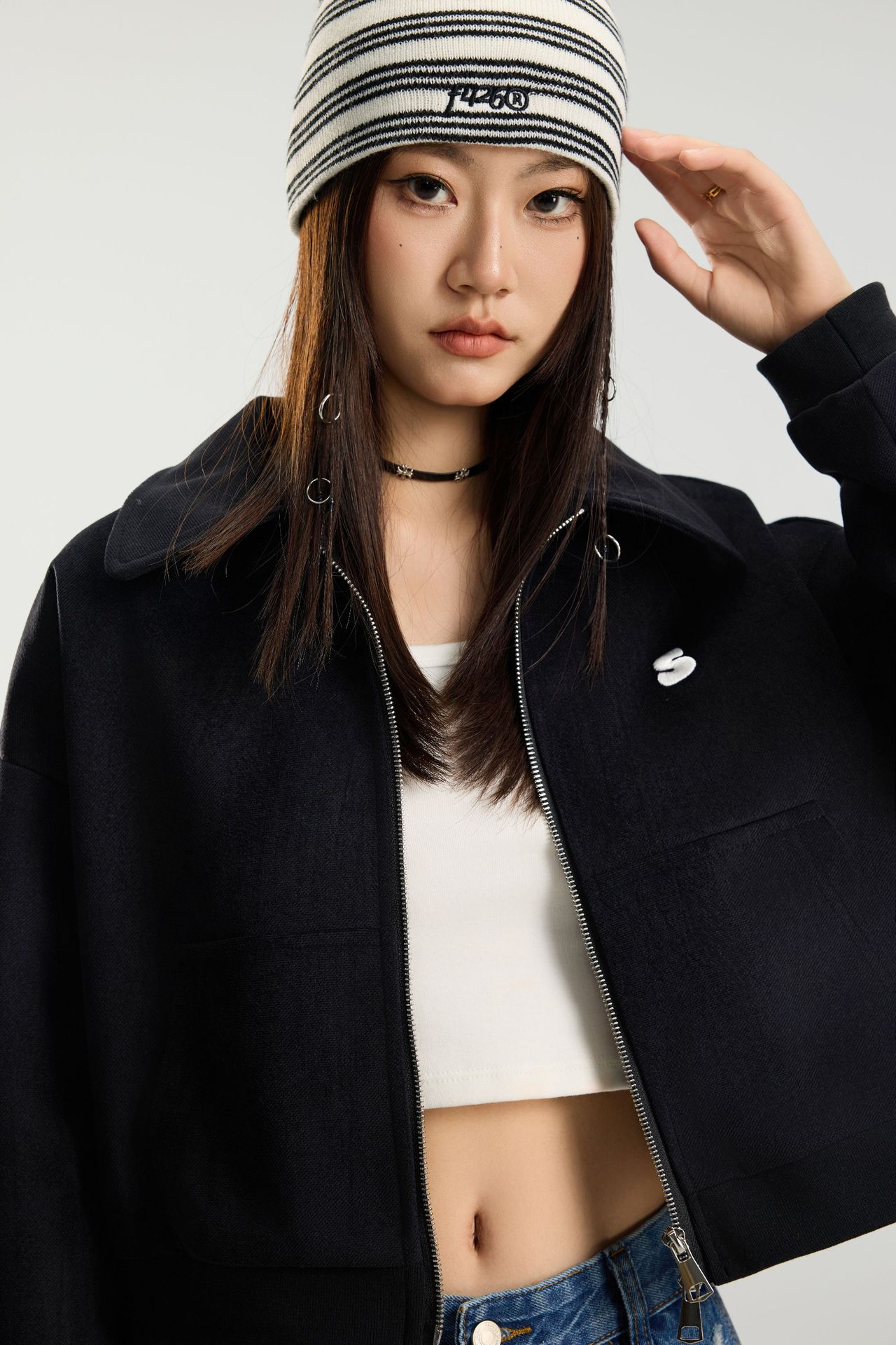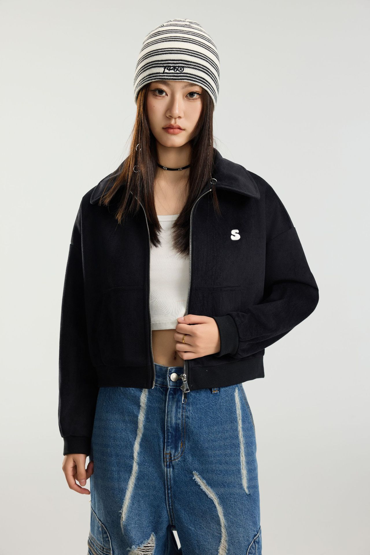 SANWEIYU 스트리트 트렌디 브랜드 레트로 자켓 여성 아메리칸 자수 짧은 자켓 슬림 핫 걸 탑 JK136스토어 가기
