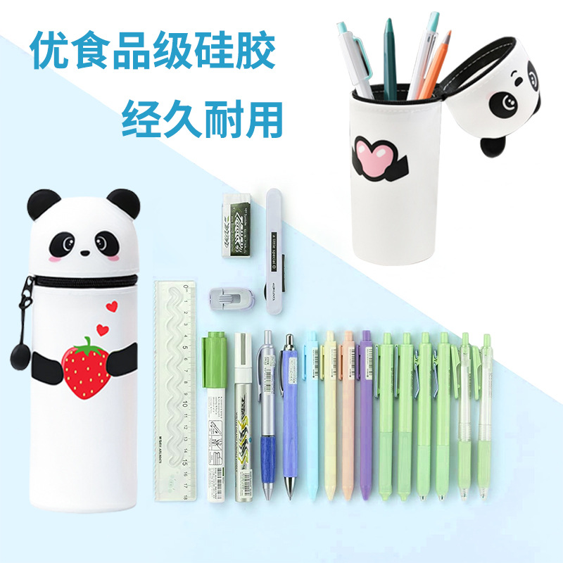 공장 직접 공급 국경 간 감압 문구 보관 가방 실리콘 펜 홀더 팬더 학생 용품 문구 상자 실리콘 펜 가방스토어 가기