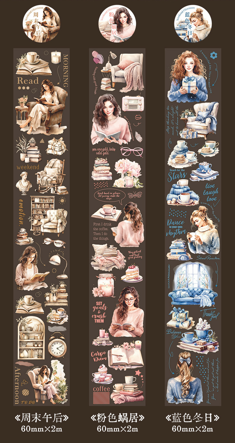 독서 시간 시리즈 테이프 좋은 날 6cm*2m 커피 캐릭터 테마 핸드북 소재 장식스토어 가기