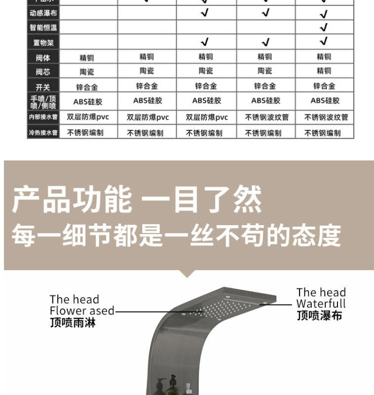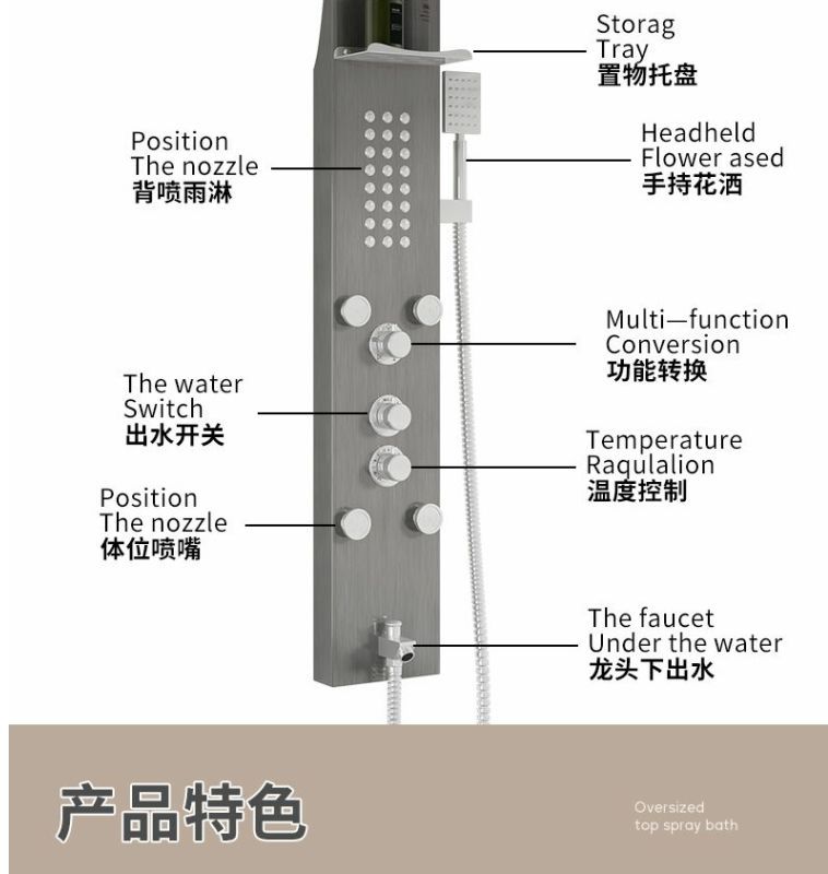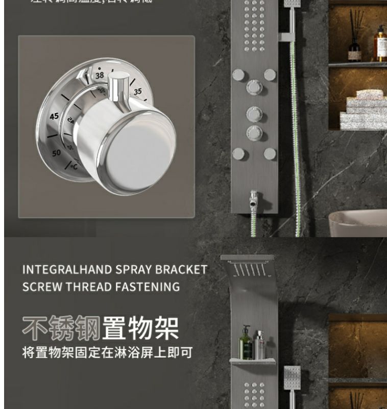 304 스테인레스 스틸 샤워 스크린 지능형 항온 레인 샤워 세트 표면 장착형 벽걸이 형 샤워 헤드 샤워기스토어 가기