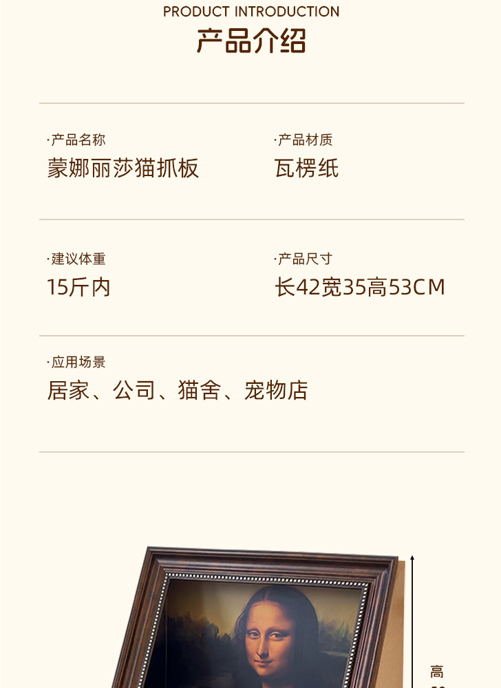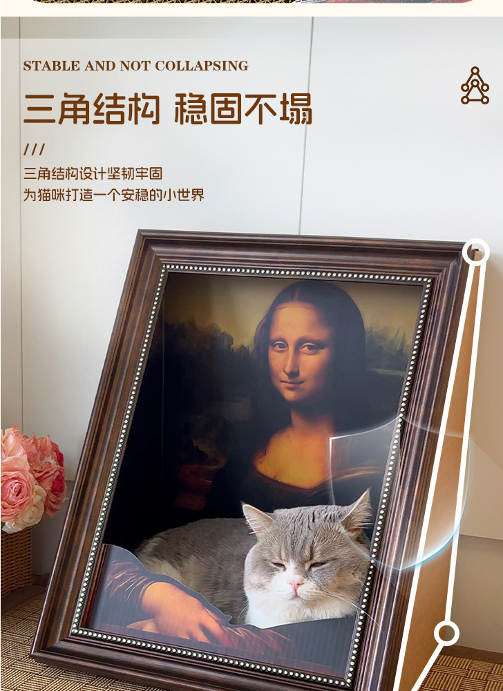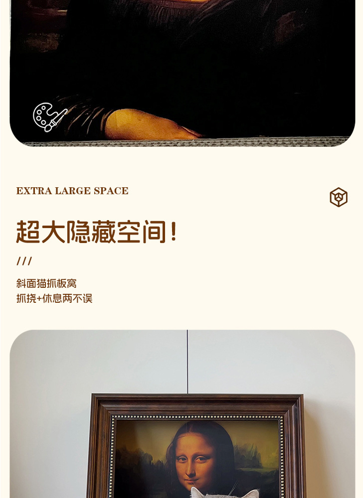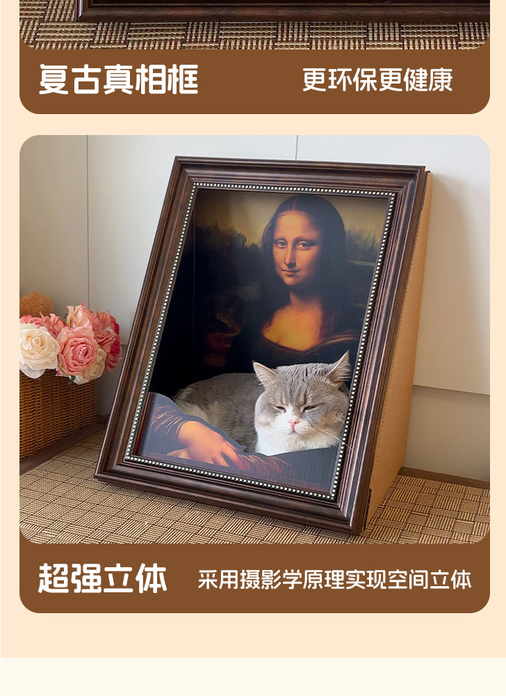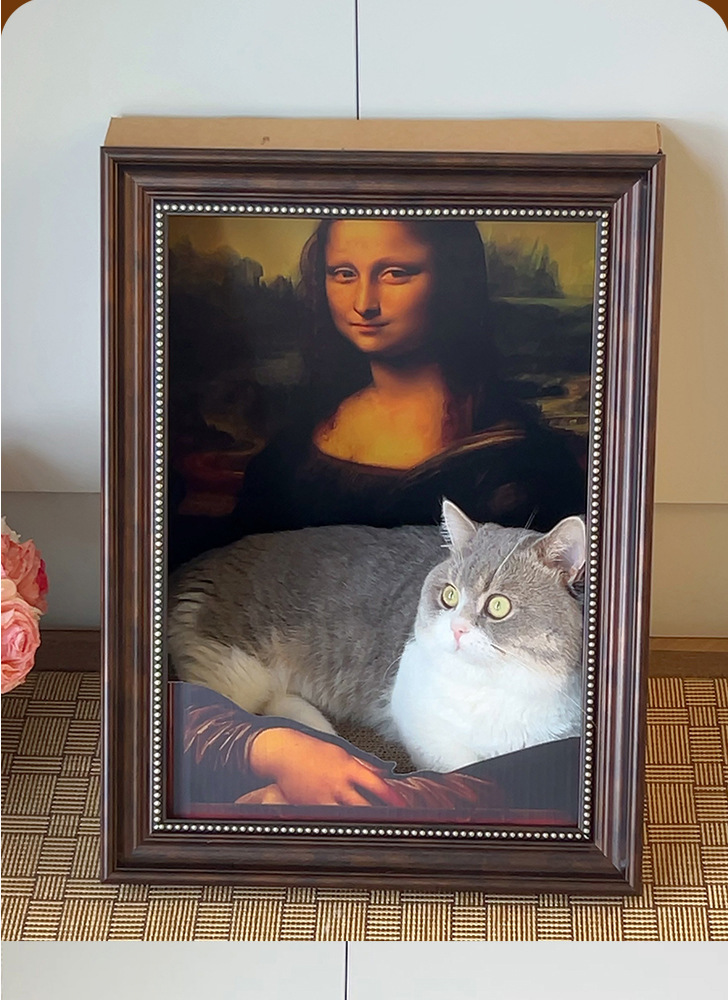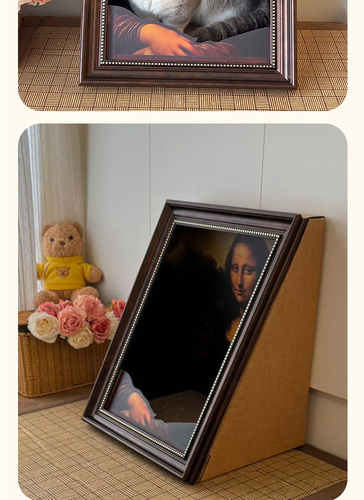 레트로 모나리자 고양이 스크래치 보드 고양이 둥지 입체 액자 유화 고양이 둥지 고양이 장난감 올인원 아트 고양이 스크래치 보드