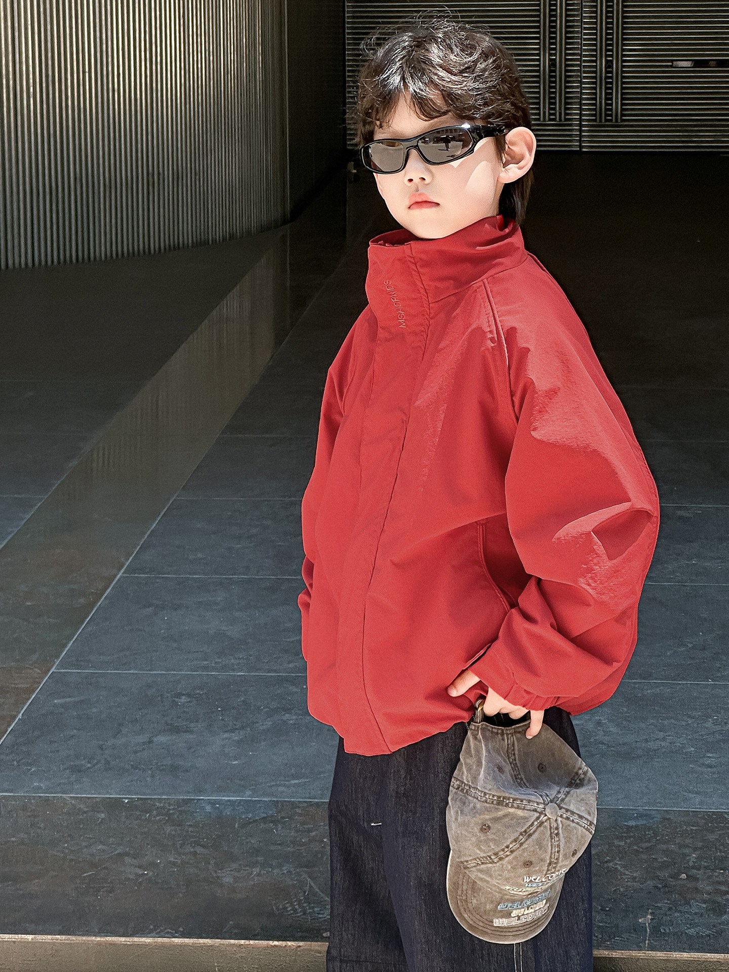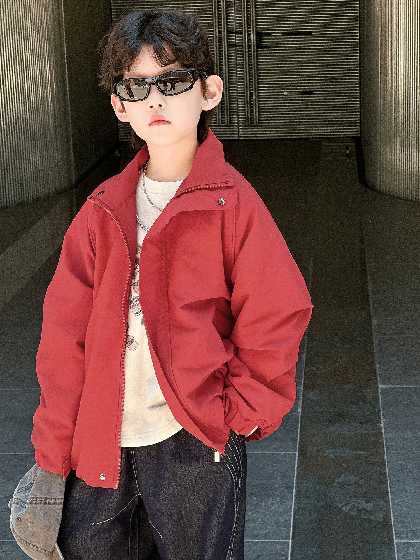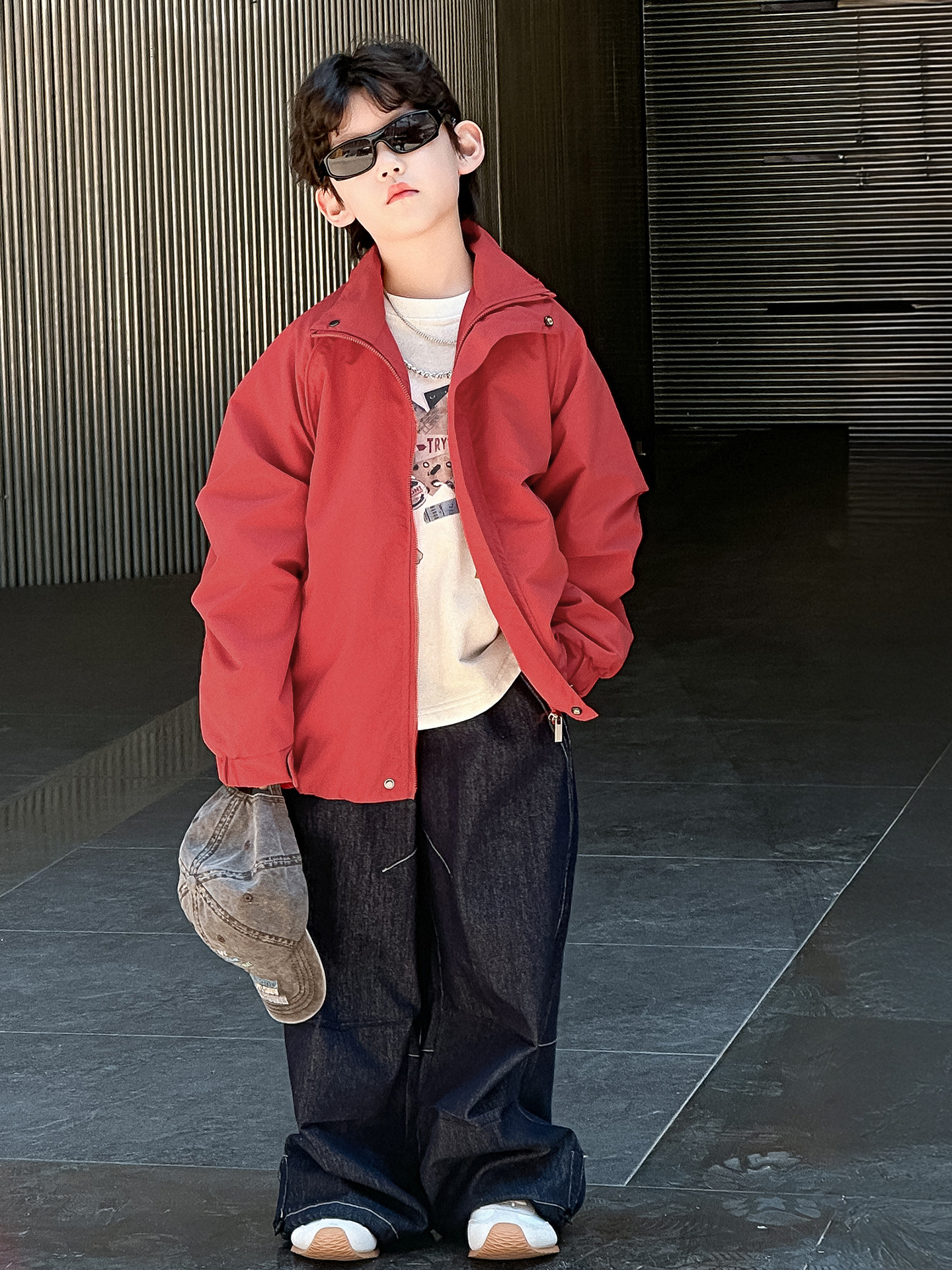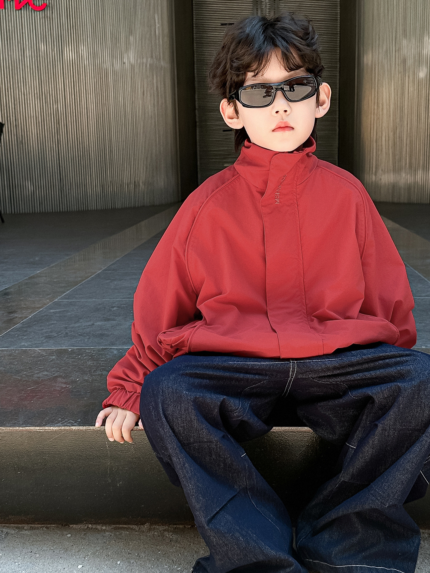면 소재 아동용 가을 자켓, 한국 스타일 2025 신상 가을 아동복, 빨간색 자수 아기 스포츠 상의, 트렌디