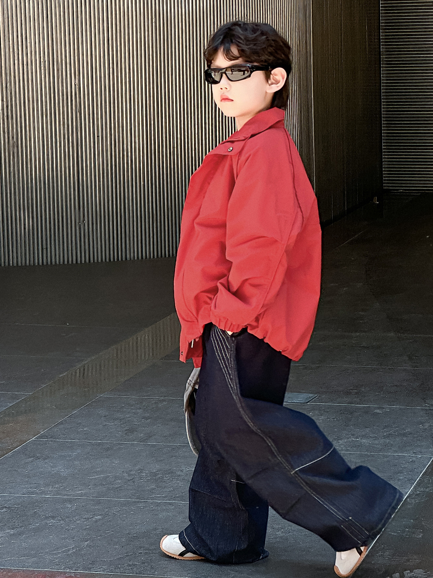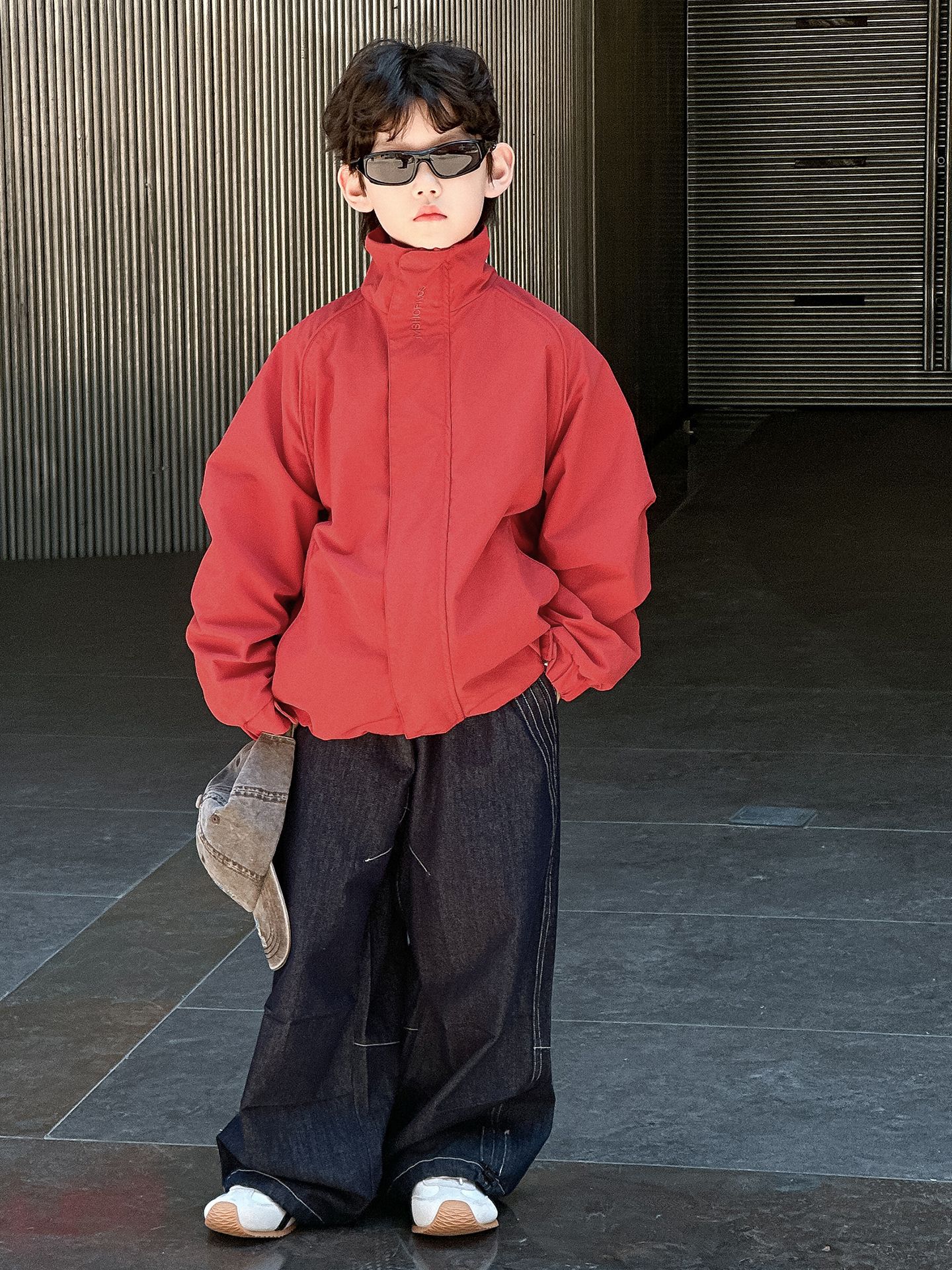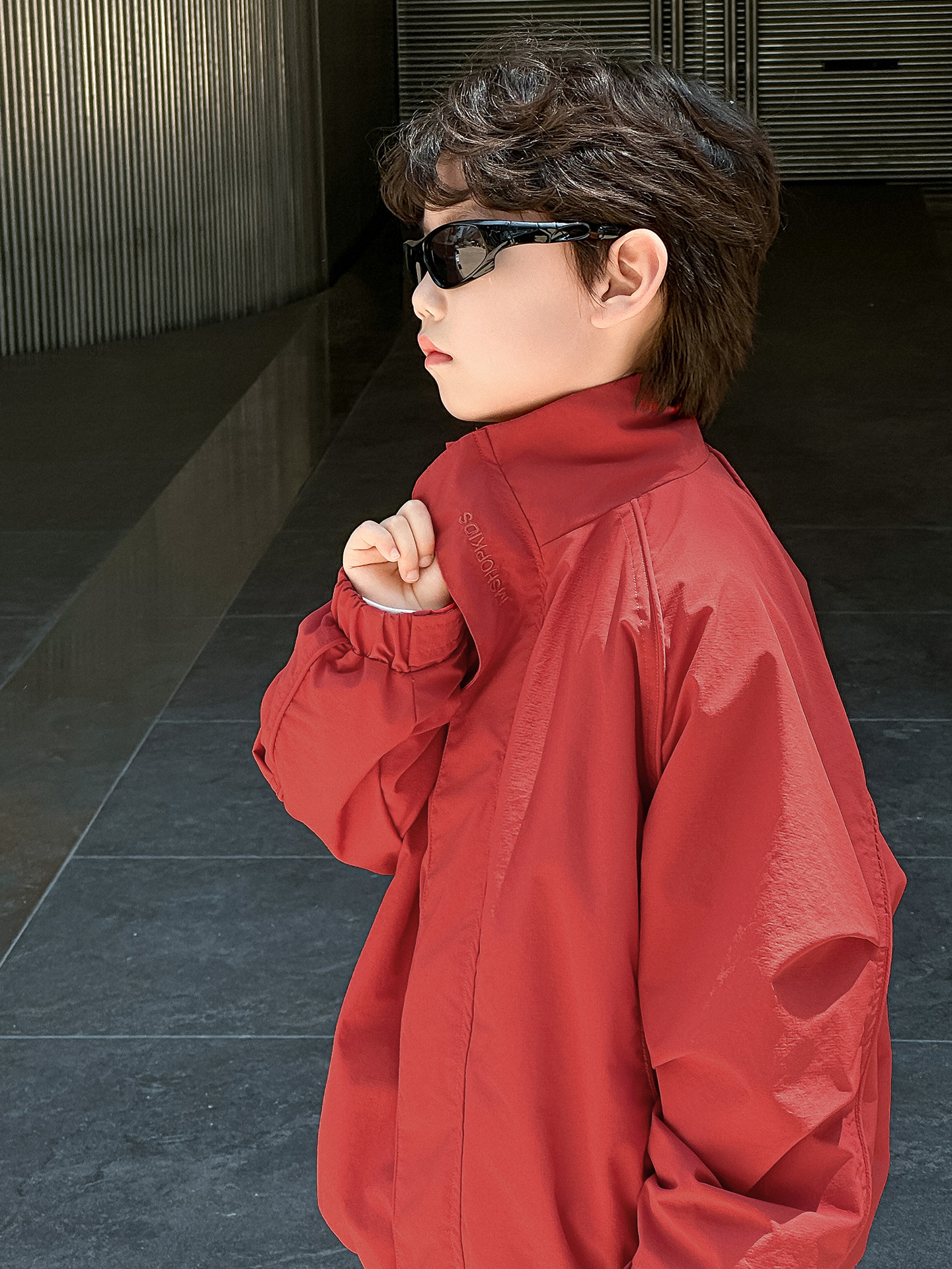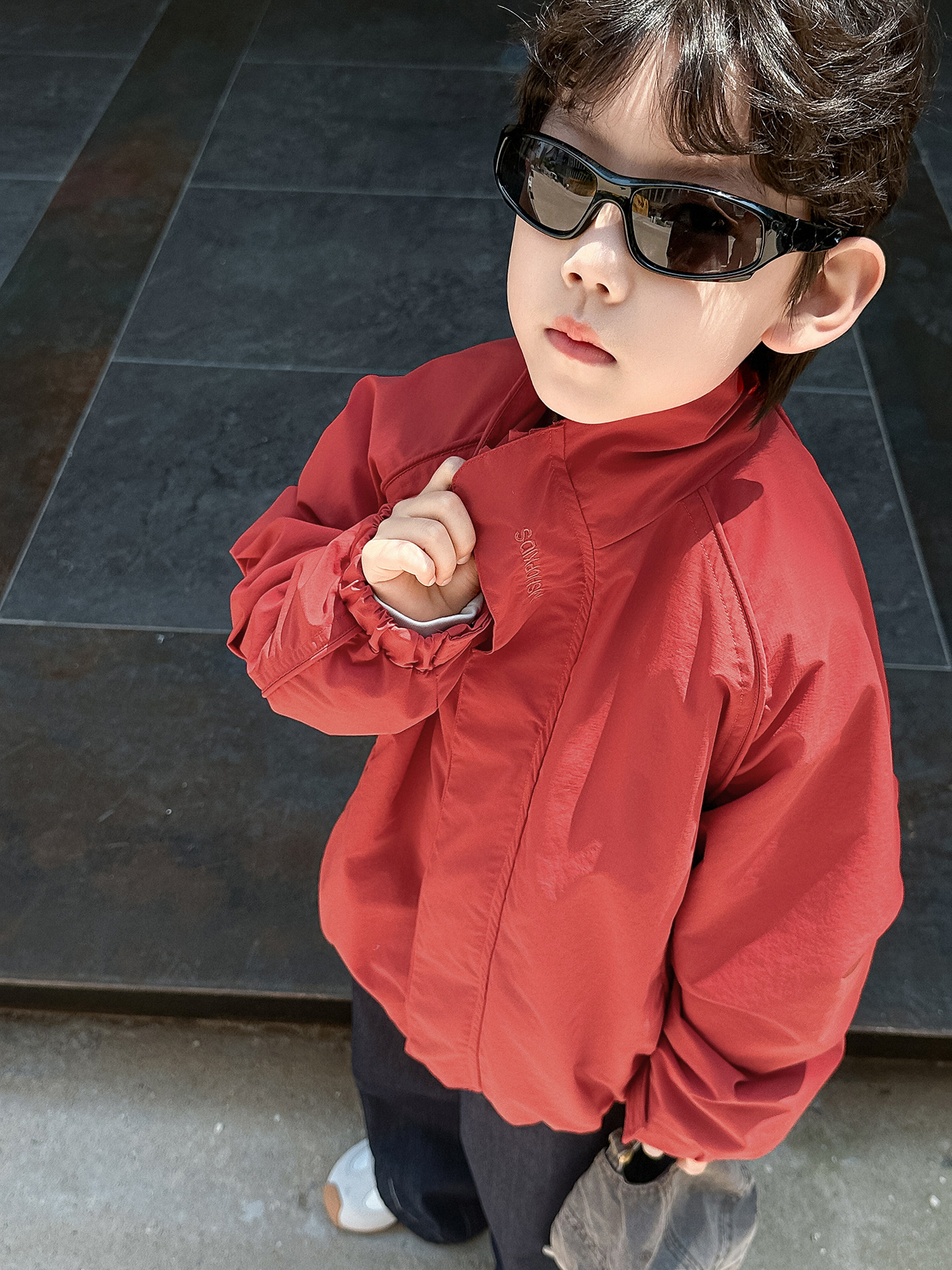 면 소재 아동용 가을 자켓, 한국 스타일 2025 신상 가을 아동복, 빨간색 자수 아기 스포츠 상의, 트렌디
