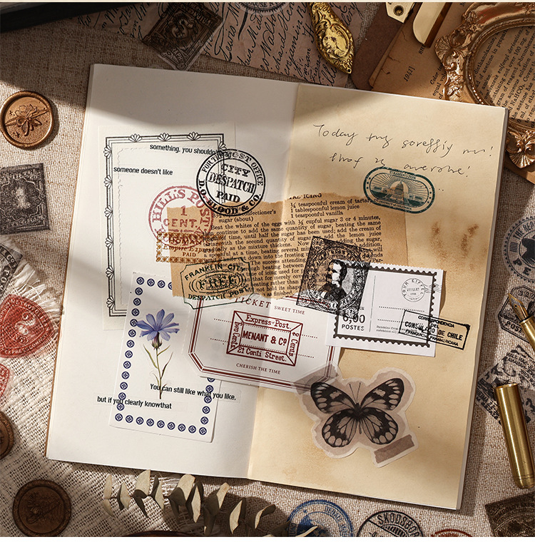 Yuezhen Imprint Old Year 애완 동물 스티커 핸드북 스티커 팩 크로스 보더 레트로 핸드북 소재 방수 핸드북 스티커스토어 가기