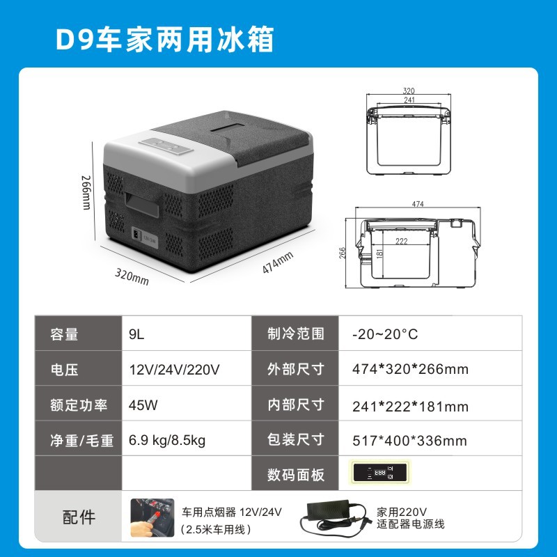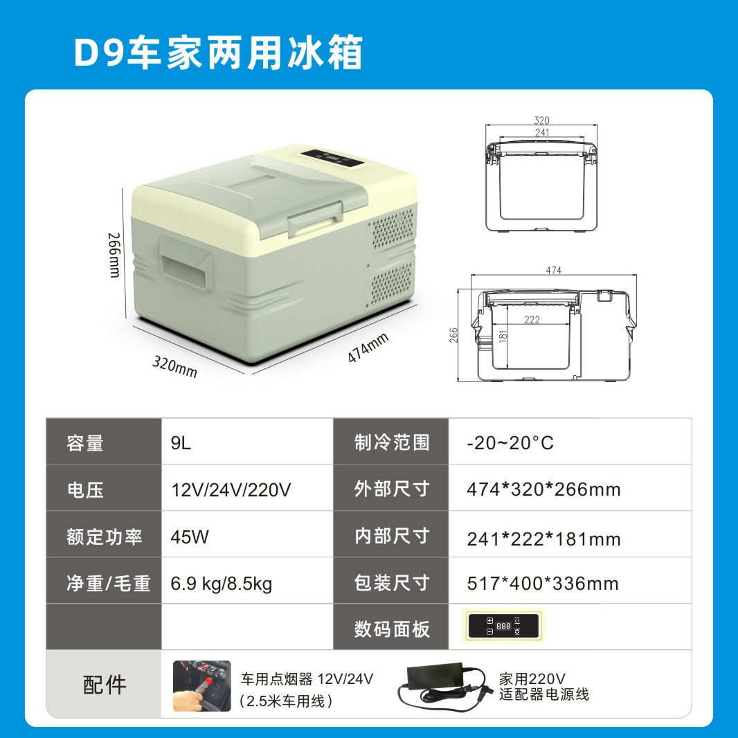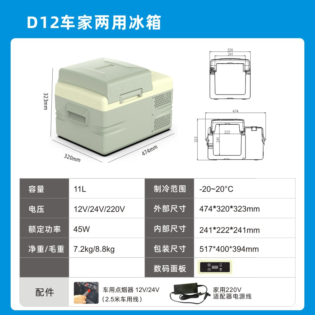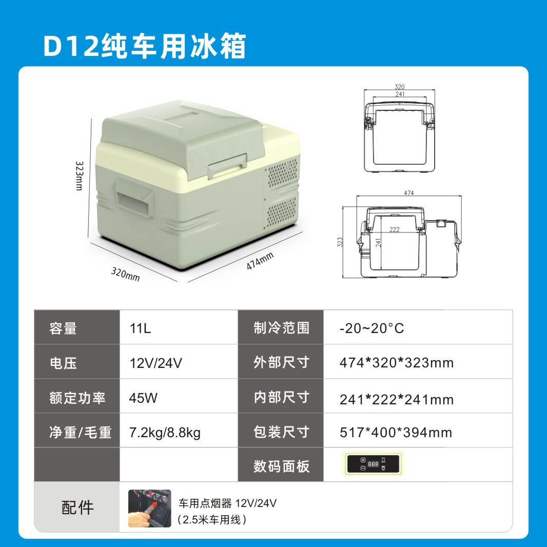 차량용 냉장고 9-12리터 냉동/냉장 겸용 야외 캠핑용 차량/가정용 12V/24V 컴프레셔 냉각 소형 냉장고