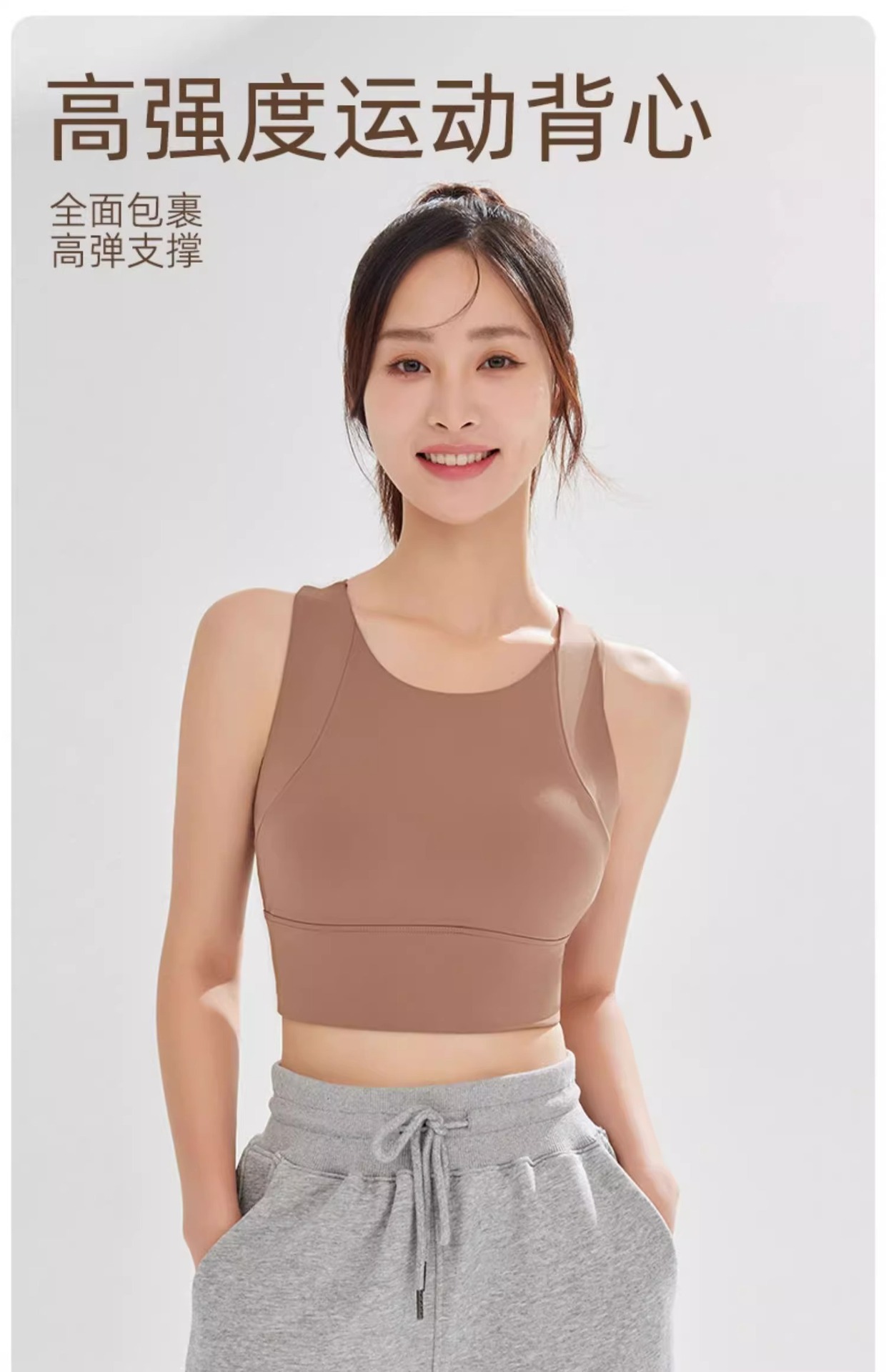 여성용 스포츠 브라, 일체형 고정컵, 런닝, 충격방지, 처짐방지, 요가탑, 피트니스 트레이닝 조끼, 아우터웨어