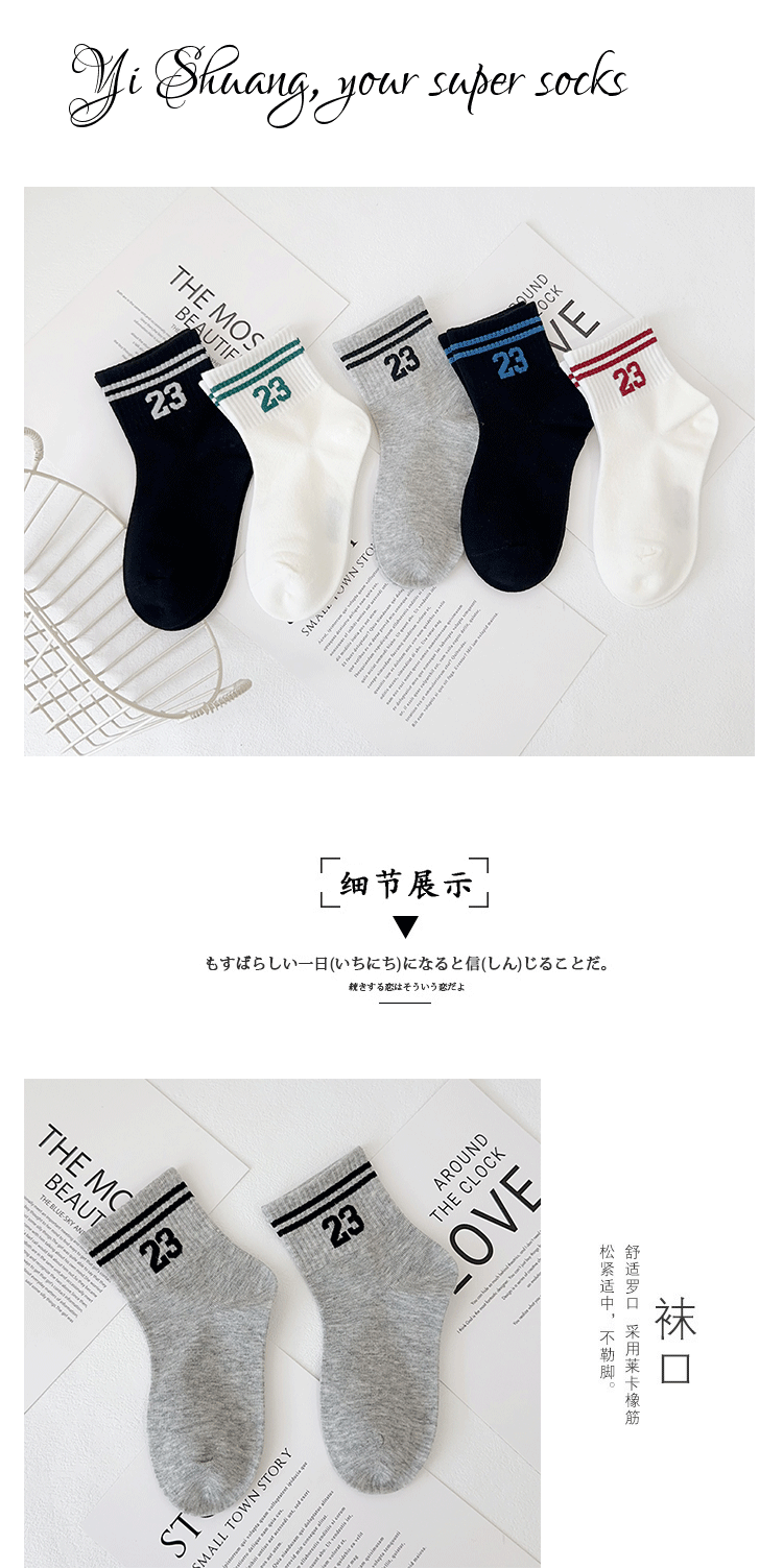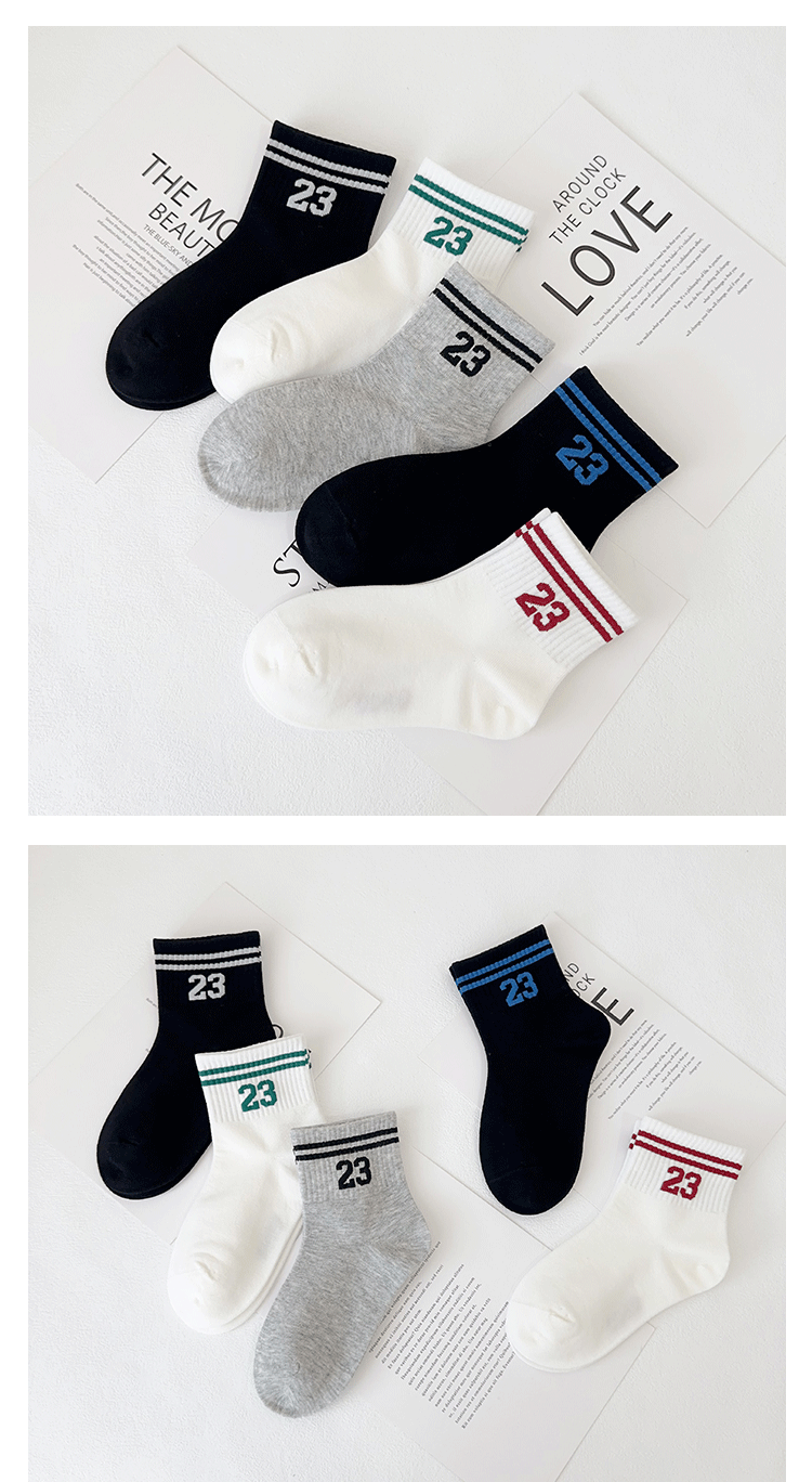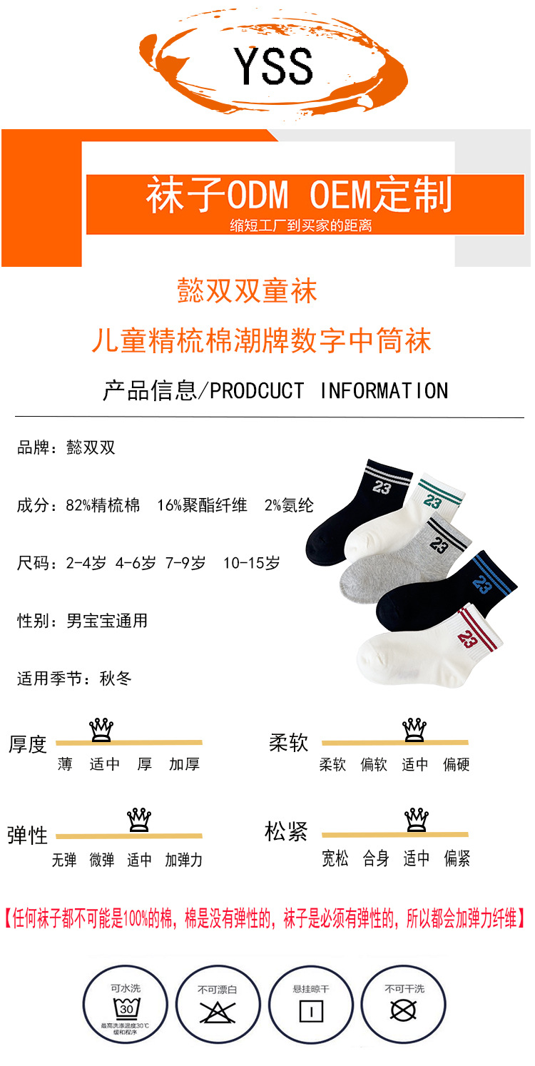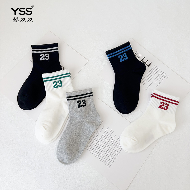 Yishuangshuang 어린이 양말 가을, 겨울 새로운 유행 브랜드 번호 23 중간 튜브 양말 빗질면 소년 스포츠 양말 뼈없는 양말스토어 가기