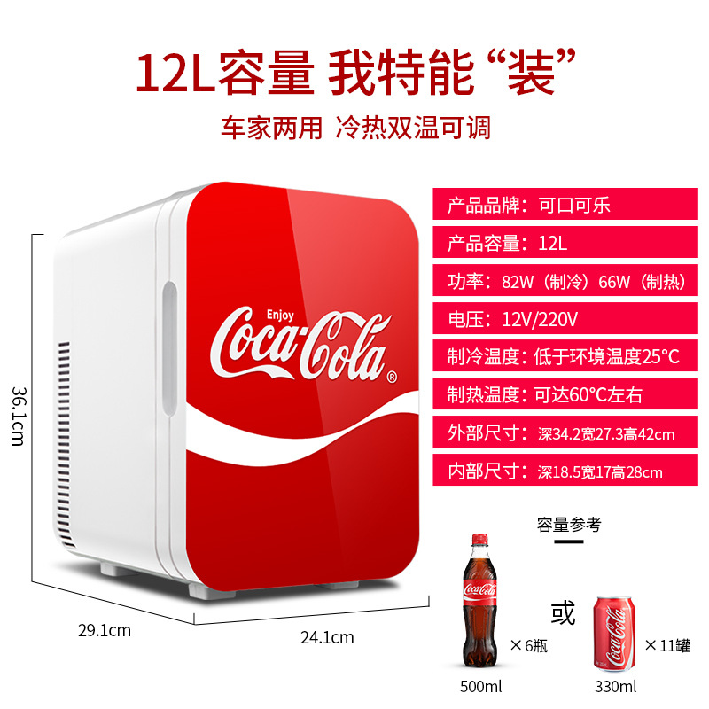코카콜라 소형 냉장고 자동차 냉장고 소형 화장품 음료 카트 홈 이중 목적 기숙사 미니 냉장고