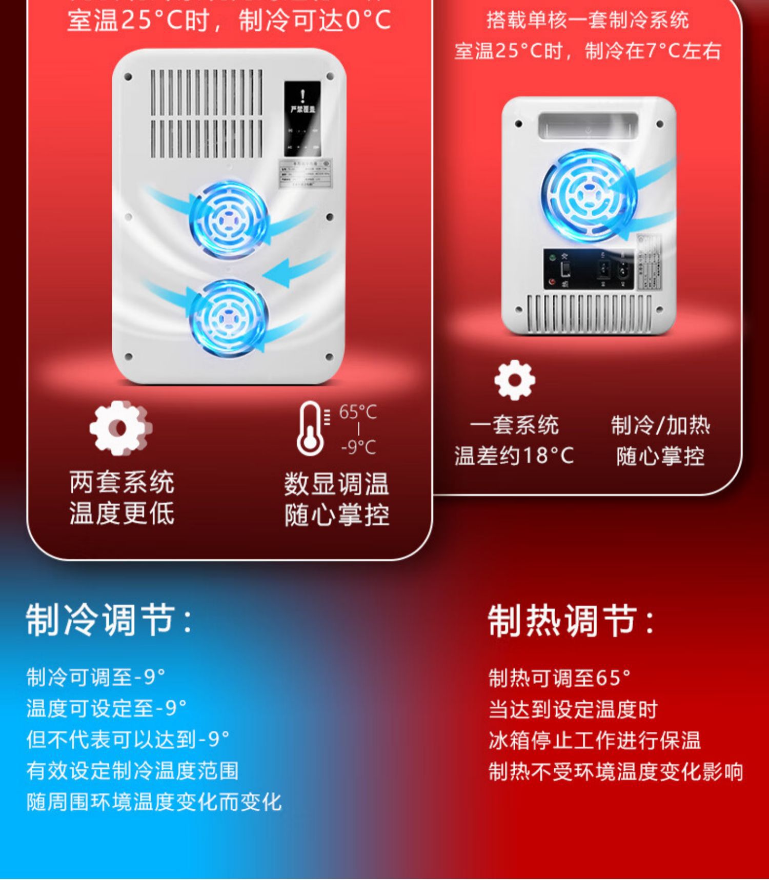 • 20L 듀얼코어 + 디지털 디스플레이 온도 조절 [자동차 및 가정용 겸용/온냉 이중 온도]