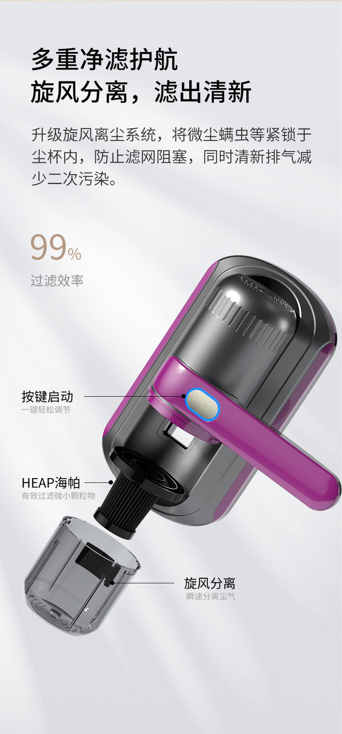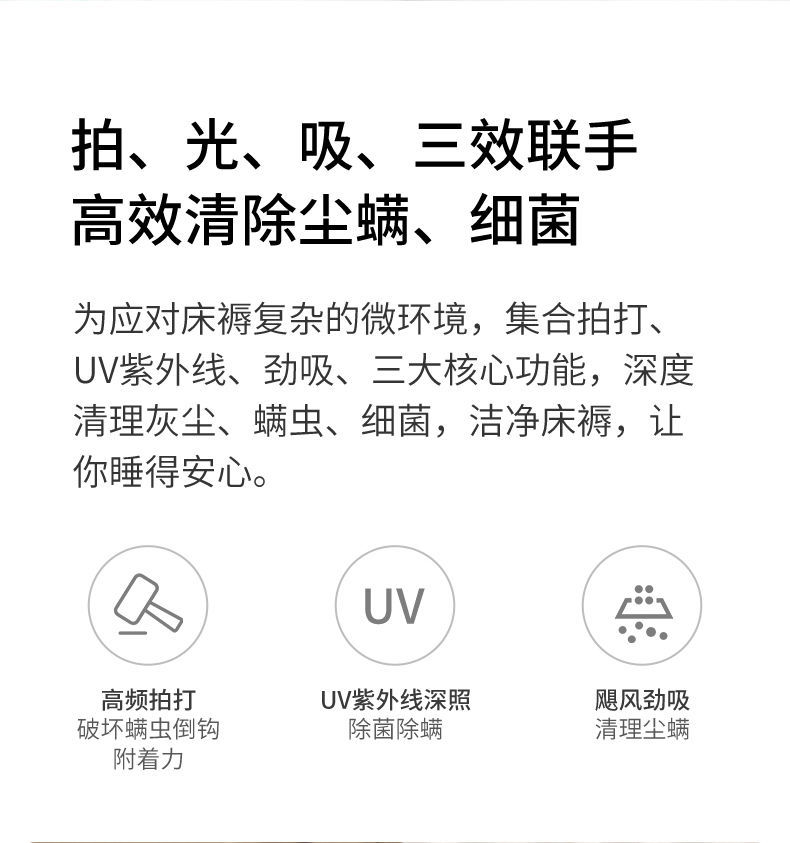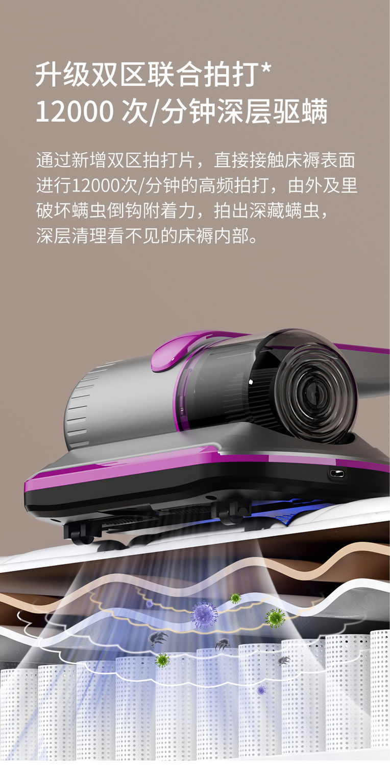 • 4KPa 흡입력 + 진정한 진드기 제거 + 99% 살균 + 업그레이드 모델