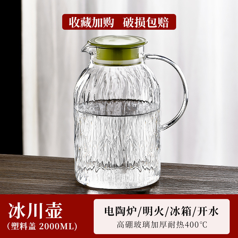 • 【冲量】2000ml冰川壶(塑料盖)【高硼硅玻璃冰水壶】₲✦✦
