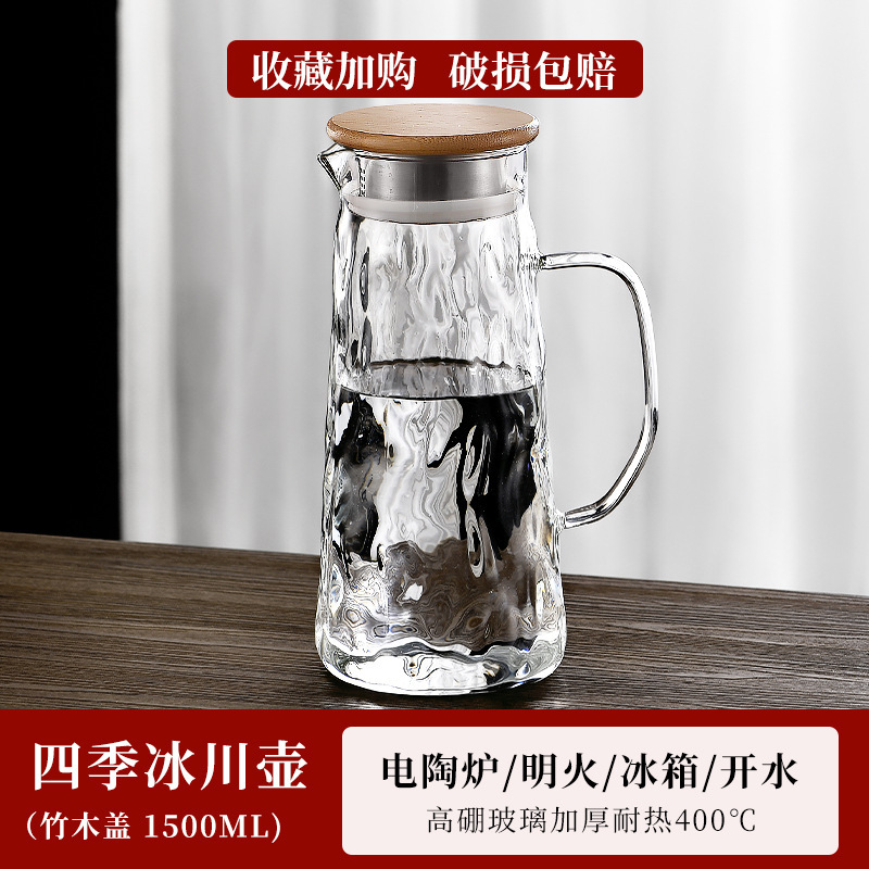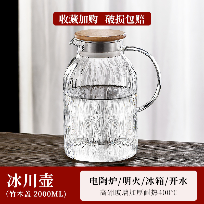 • 【冲量】2000ml冰川壶(竹木不锈钢盖)【高硼硅玻璃冰水壶】₲✦✦