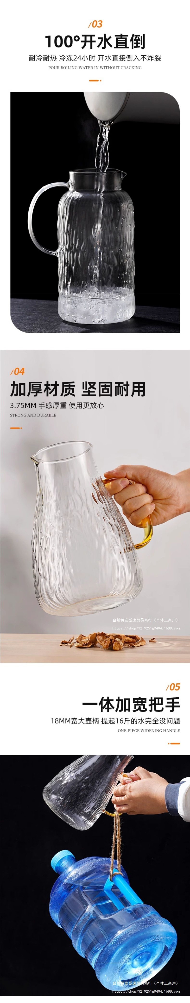 冷水壶玻璃耐高温大容量家用晾凉白开水壶茶壶泡凉水杯扎壶凉水壶
