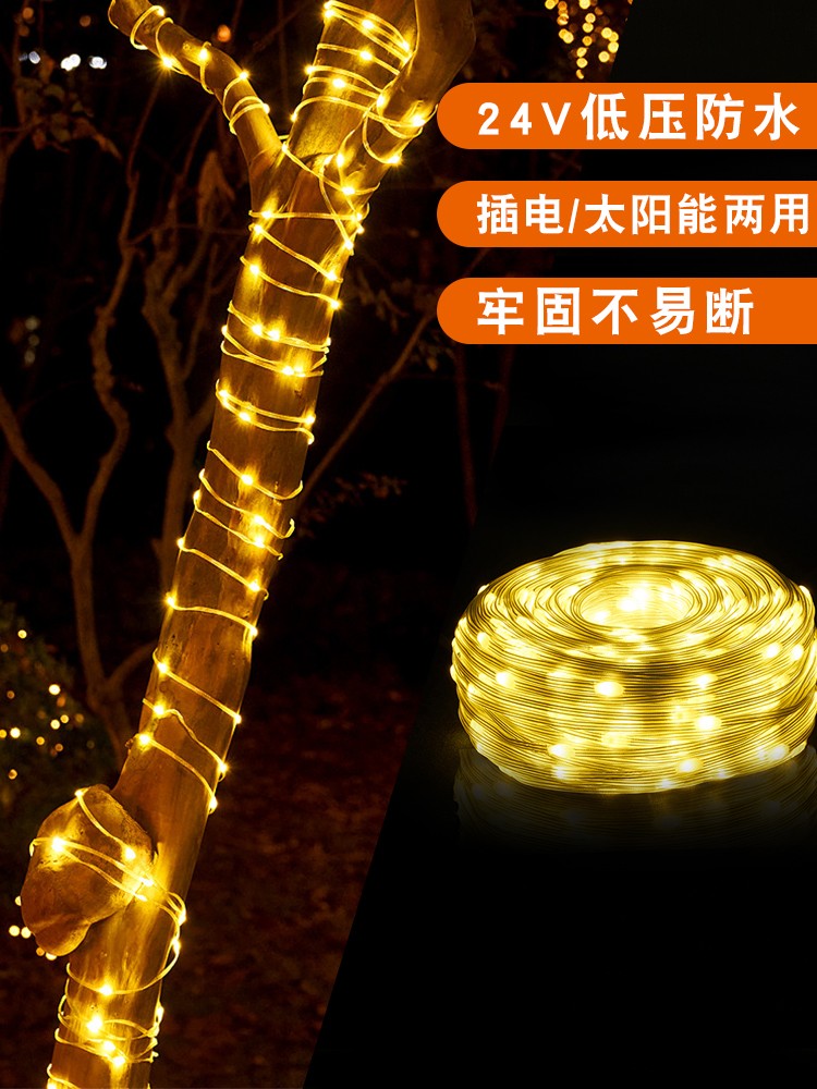 태양 광 가죽 라이트 LED 작은 다채로운 조명 깜박이 문자열 조명 야외 안뜰 캠핑 방수 분위기 장식 트리 조명