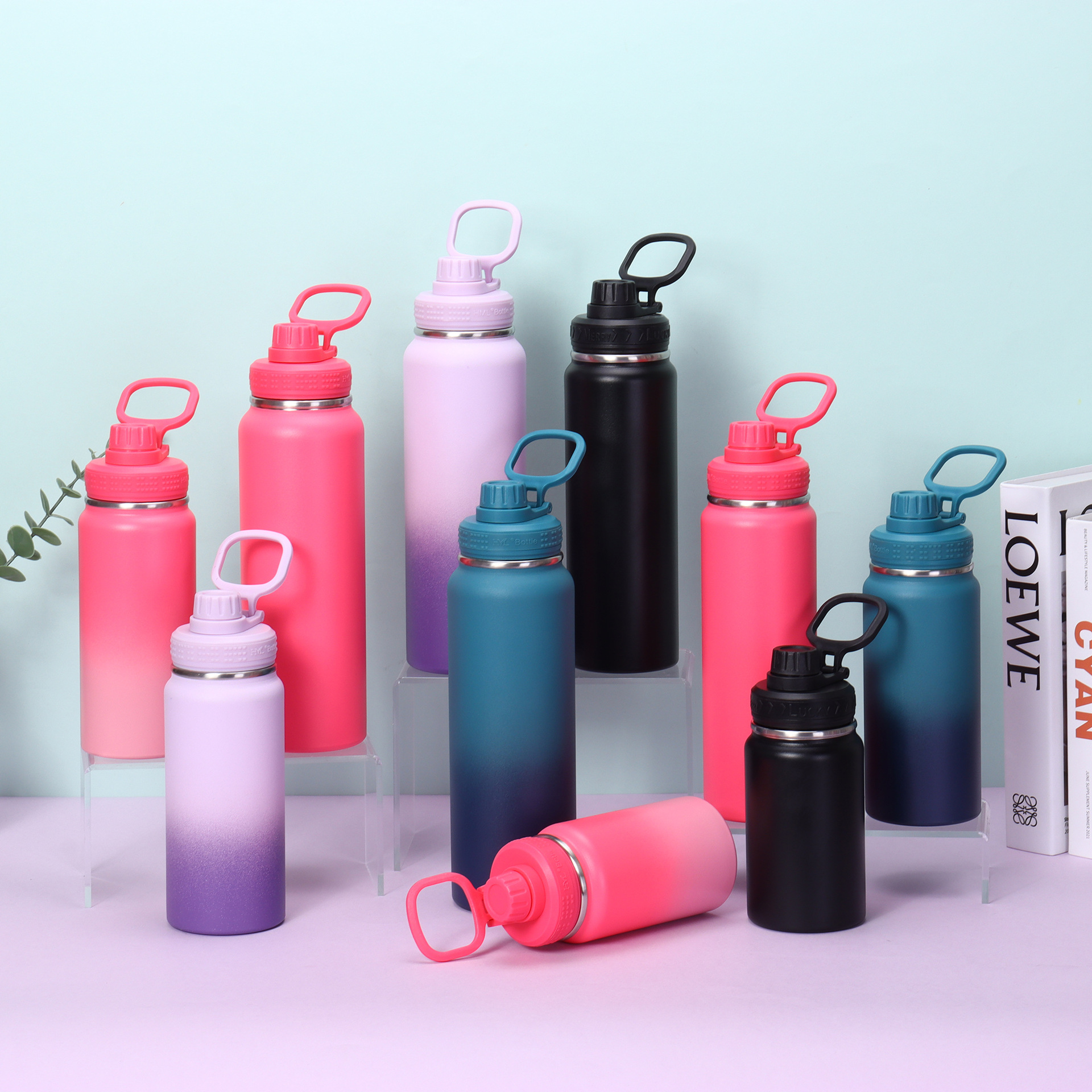 국경 간 304 스테인레스 스틸 절연 컵 휴대용 공간 주전자 그라디언트 색상 야외 스포츠 주전자 등산 주전자스토어 가기