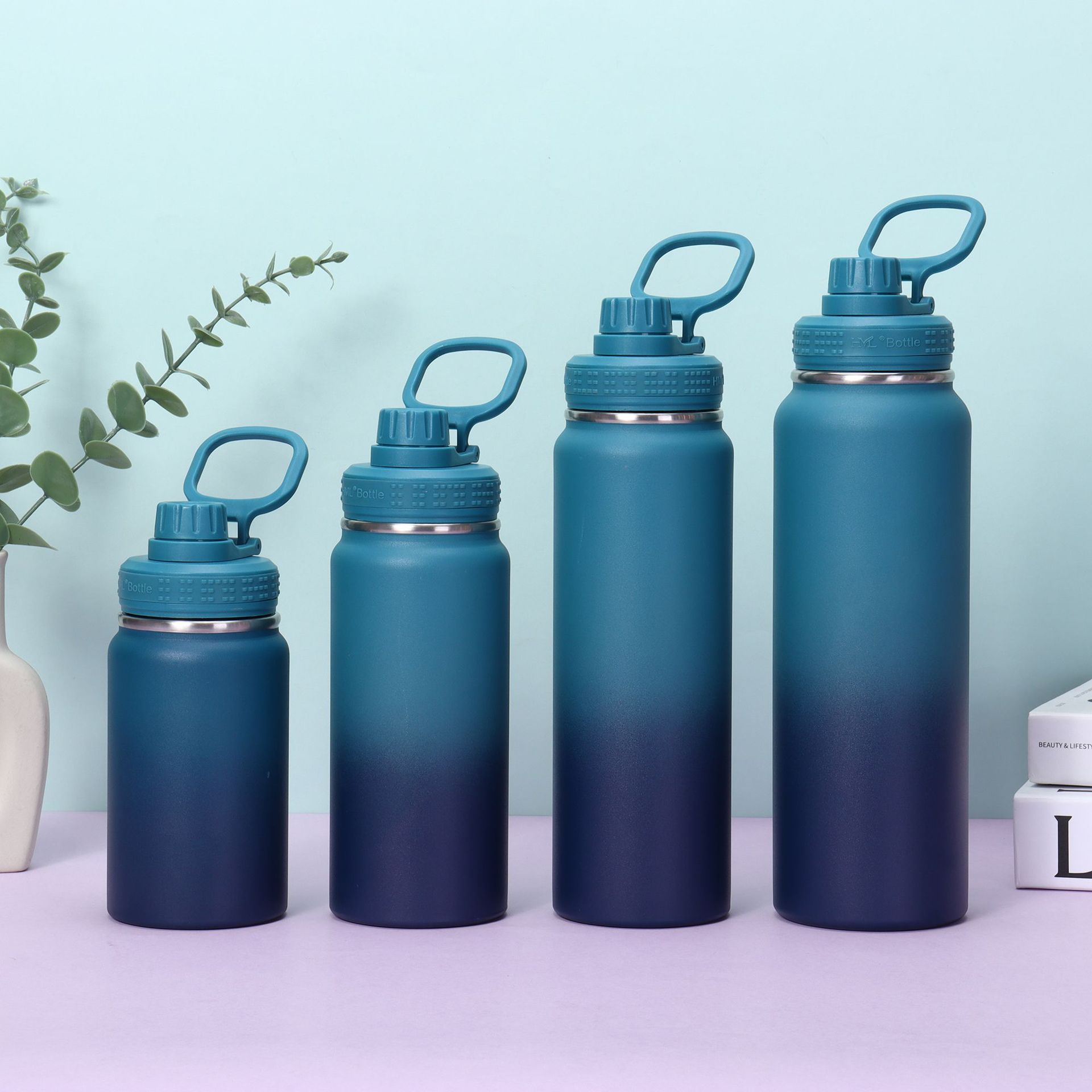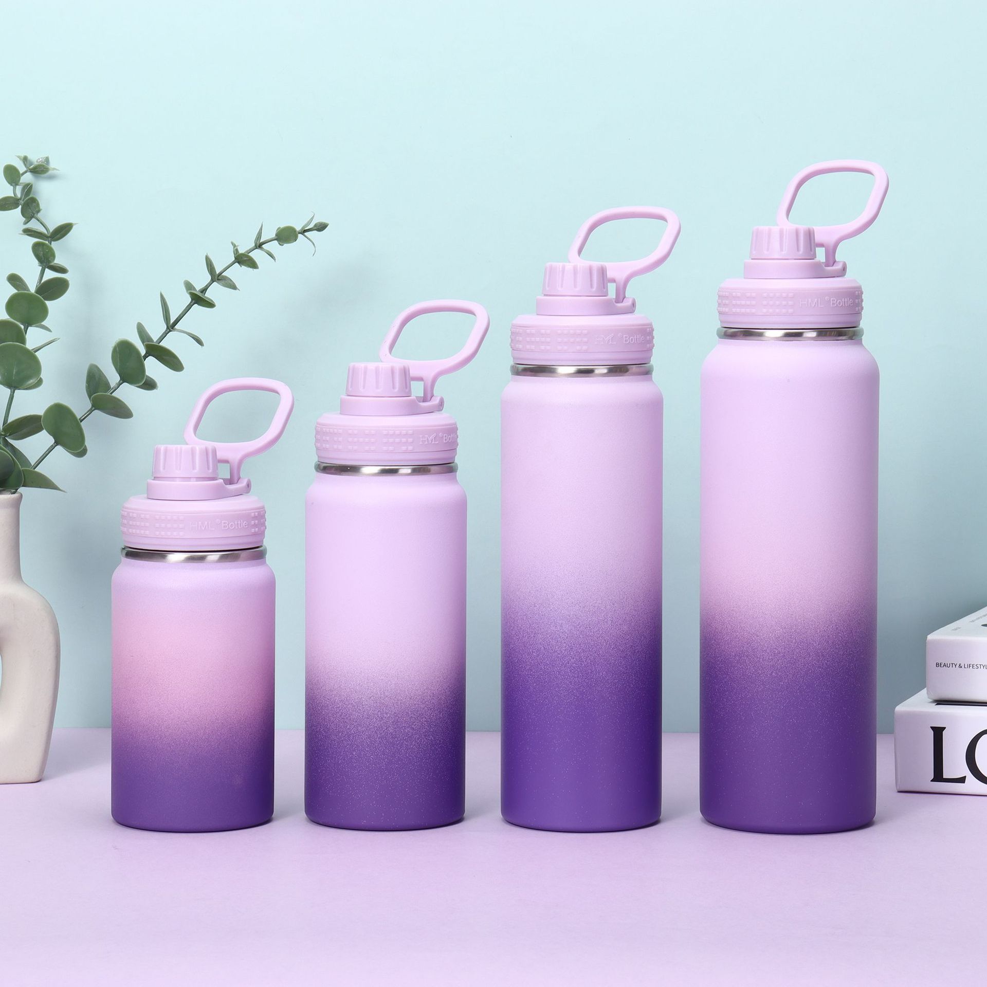 국경 간 304 스테인레스 스틸 절연 컵 휴대용 공간 주전자 그라디언트 색상 야외 스포츠 주전자 등산 주전자