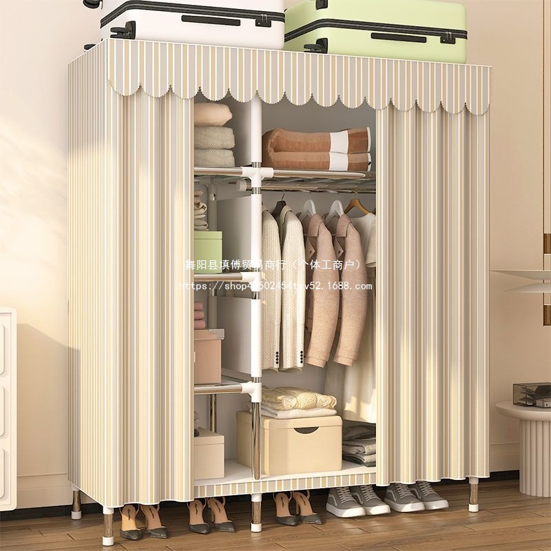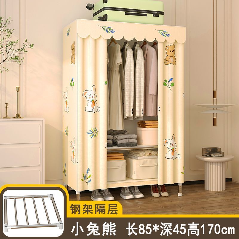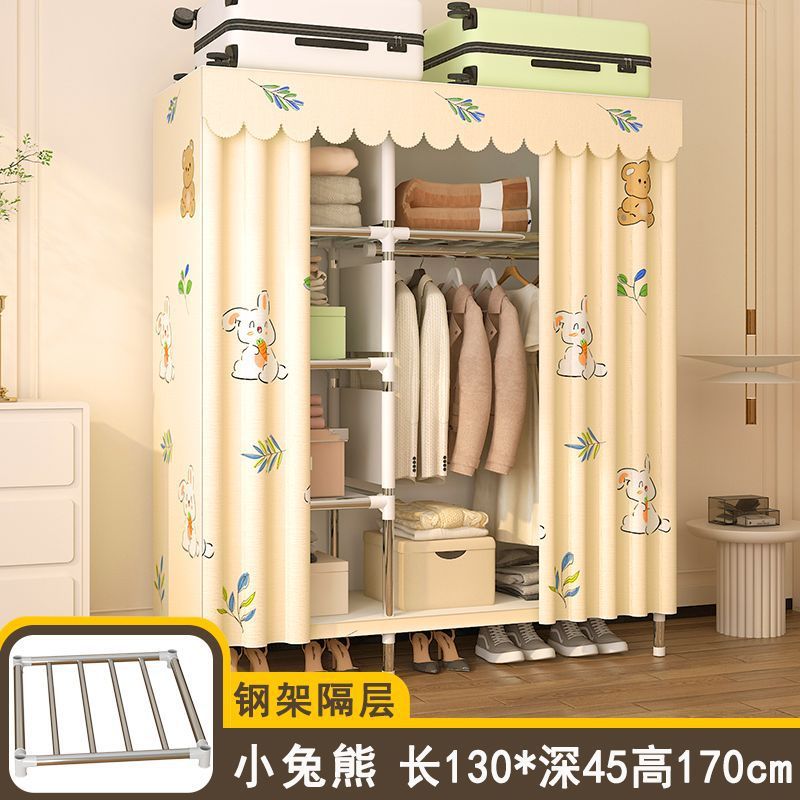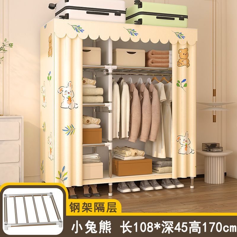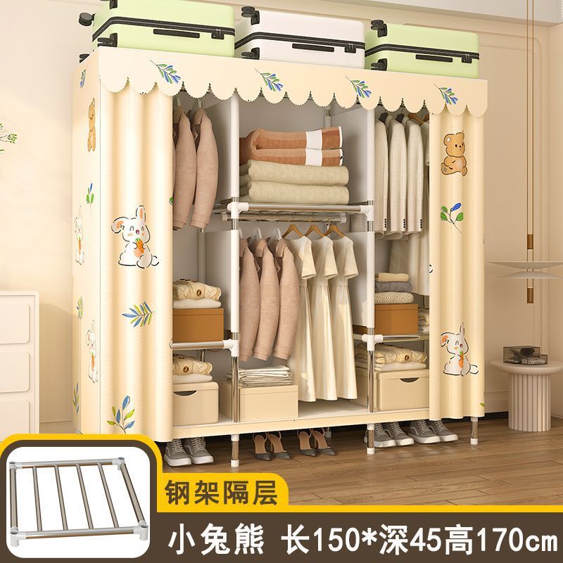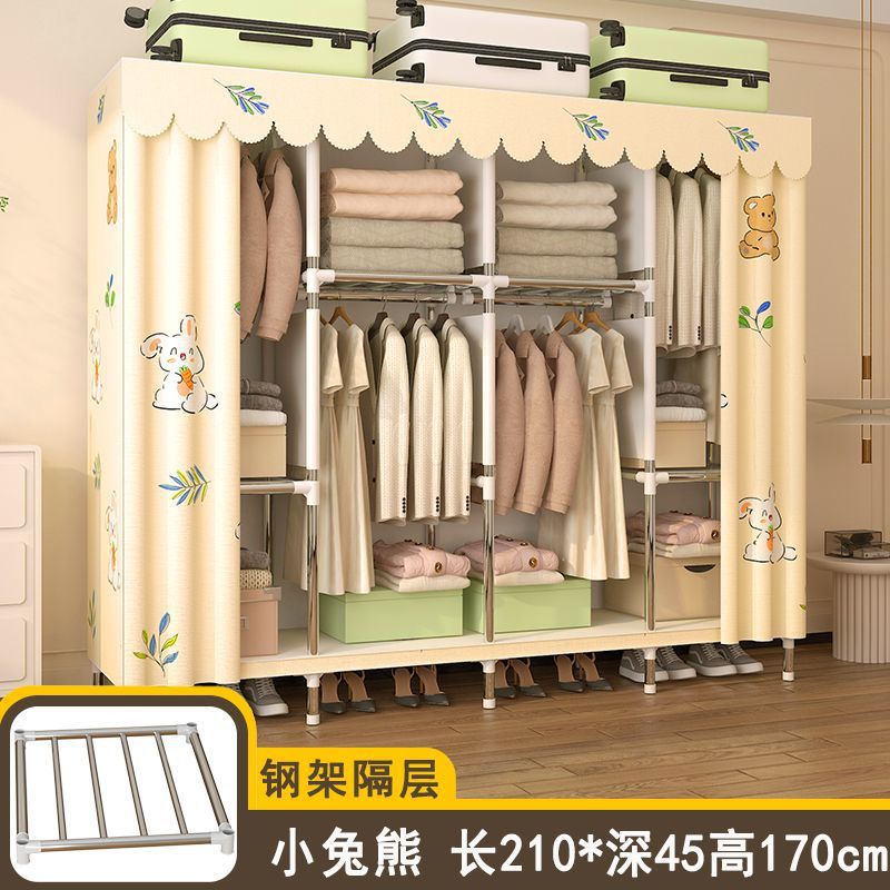 간단한 옷장 임대 집 홈 침실 조립 강철 프레임 캐비닛 강철 파이프 두꺼운 강화 보관 옷장 내구성