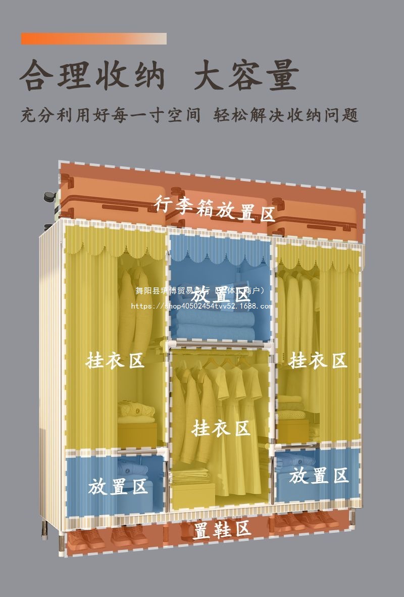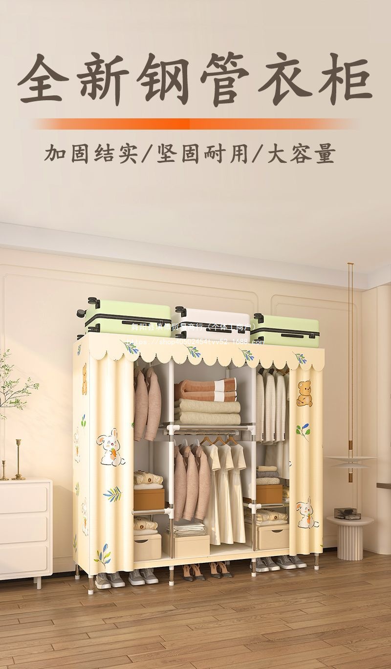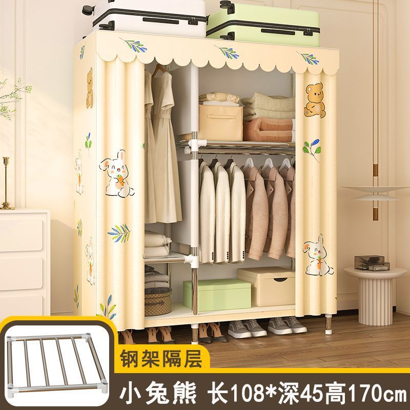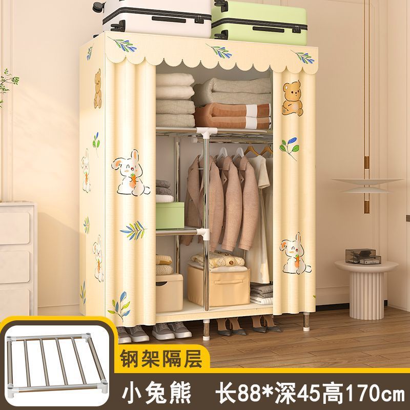 간단한 옷장 임대 집 홈 침실 조립 강철 프레임 캐비닛 강철 파이프 두꺼운 강화 보관 옷장 내구성