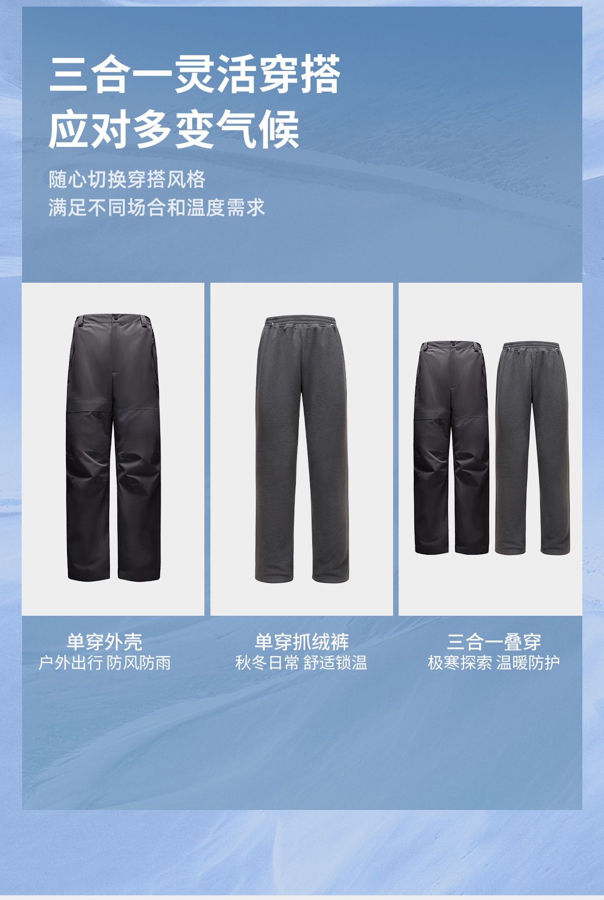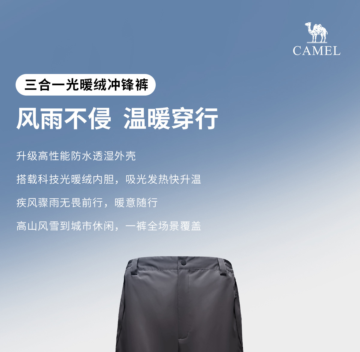 Camel 3-in-1 방수 바지, 남성용 및 여성용, 벨벳 라이너 낙하산 바지, 등산용 내마모성 작업 바지스토어 가기
