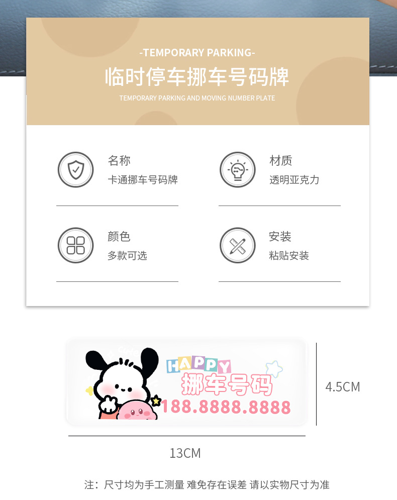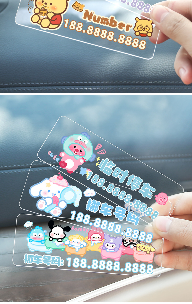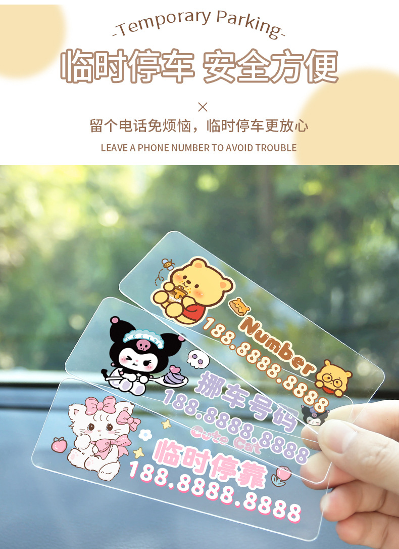 새로운 만화 자동차 임시 주차 번호판 자동차 이동 전화 번호판 자동차 이동 번호 보관 장식 카드스토어 가기
